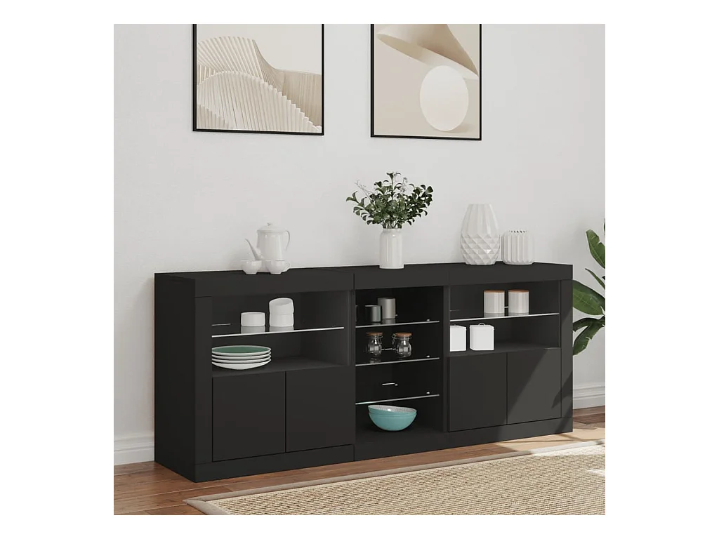 Buffet | Bahut | Meuble de rangement avec lumières LED noir 162x37x67 cm
