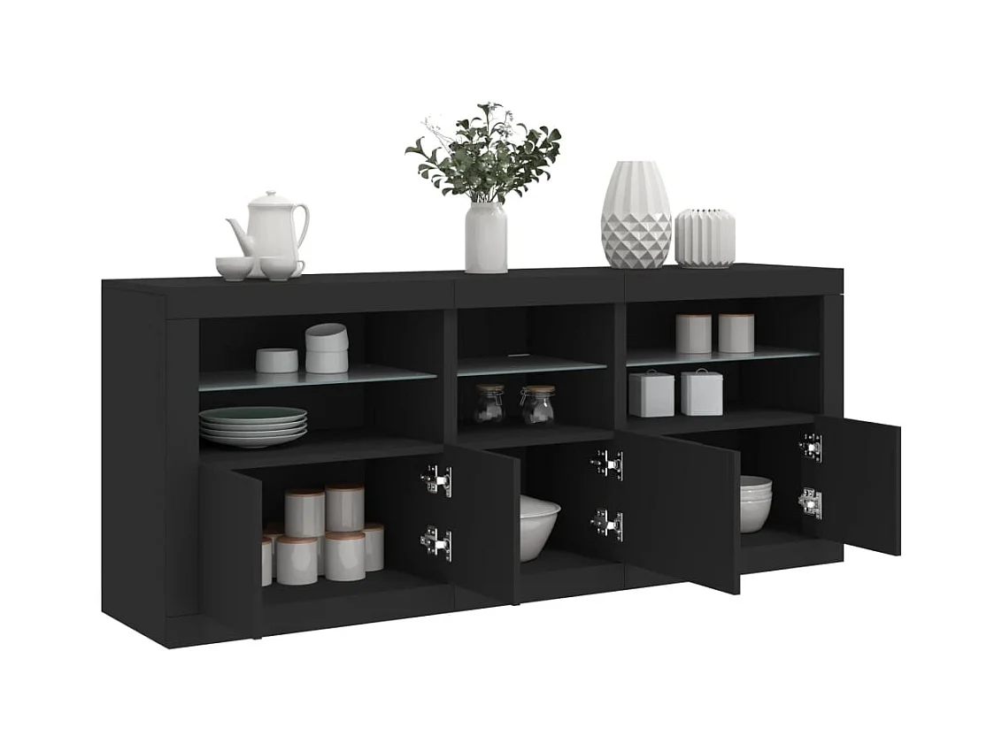 Buffet | Bahut | Meuble de rangement avec lumières LED noir 162x37x67 cm