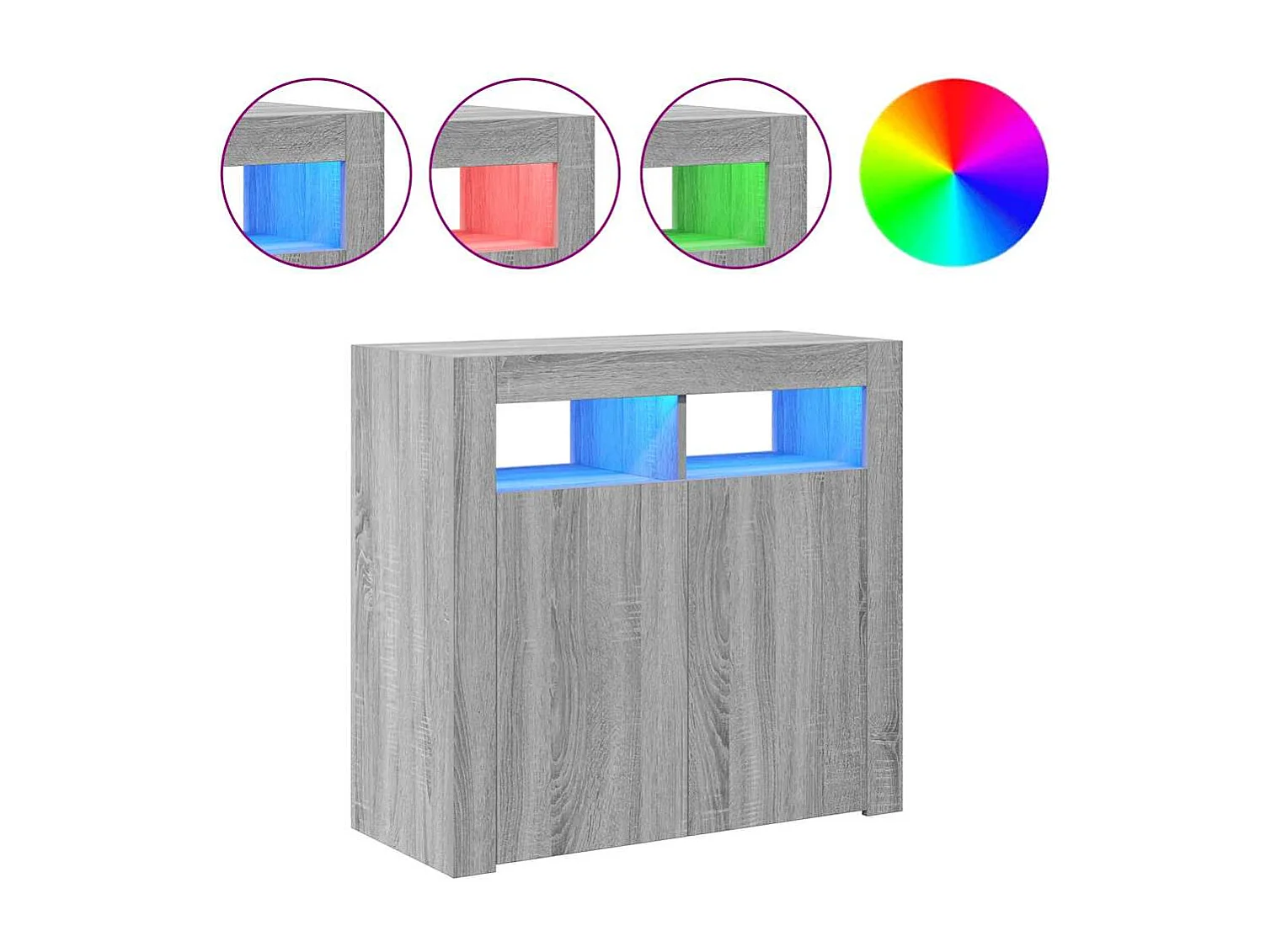 Buffet | Bahut | Meuble de rangement avec lumières LED sonoma gris 80x35x75 cm