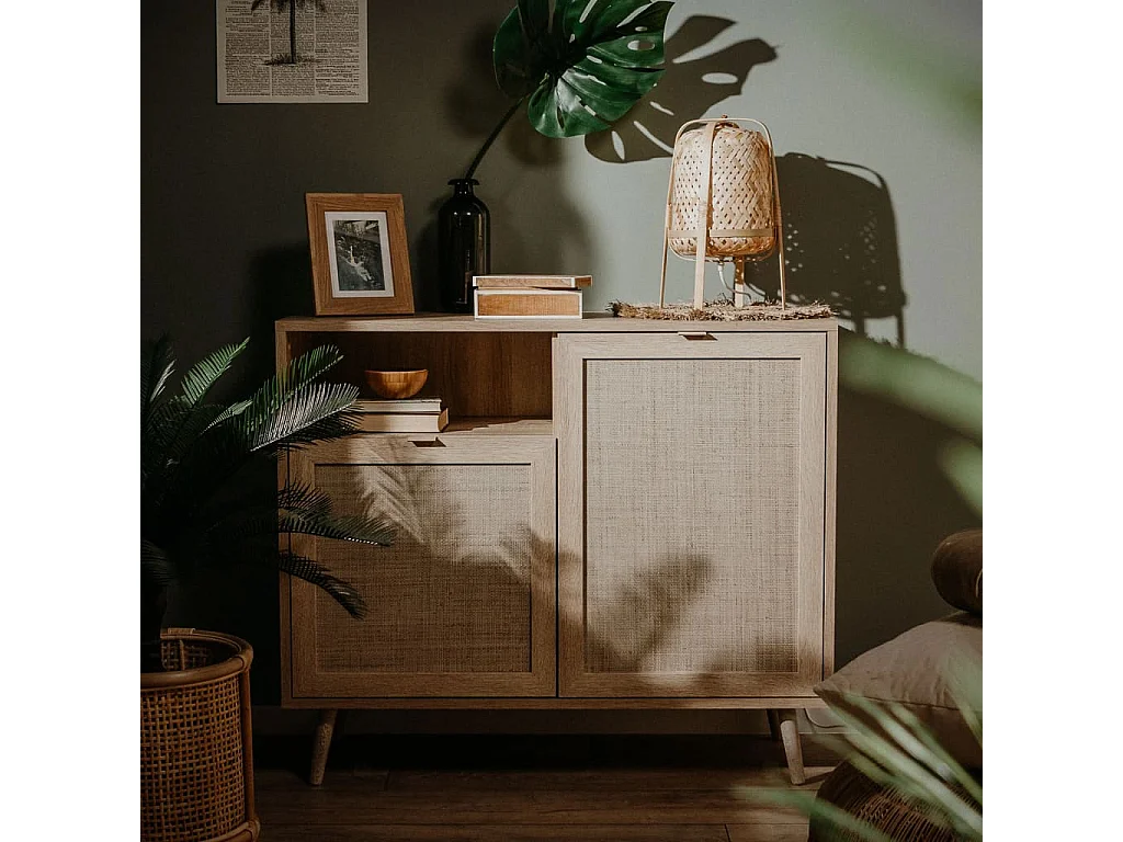 Buffet, Bahut, Meuble de rangement Bali 01A Chêne sonoma et impression de canne EGER79153 BonneVie Meuble