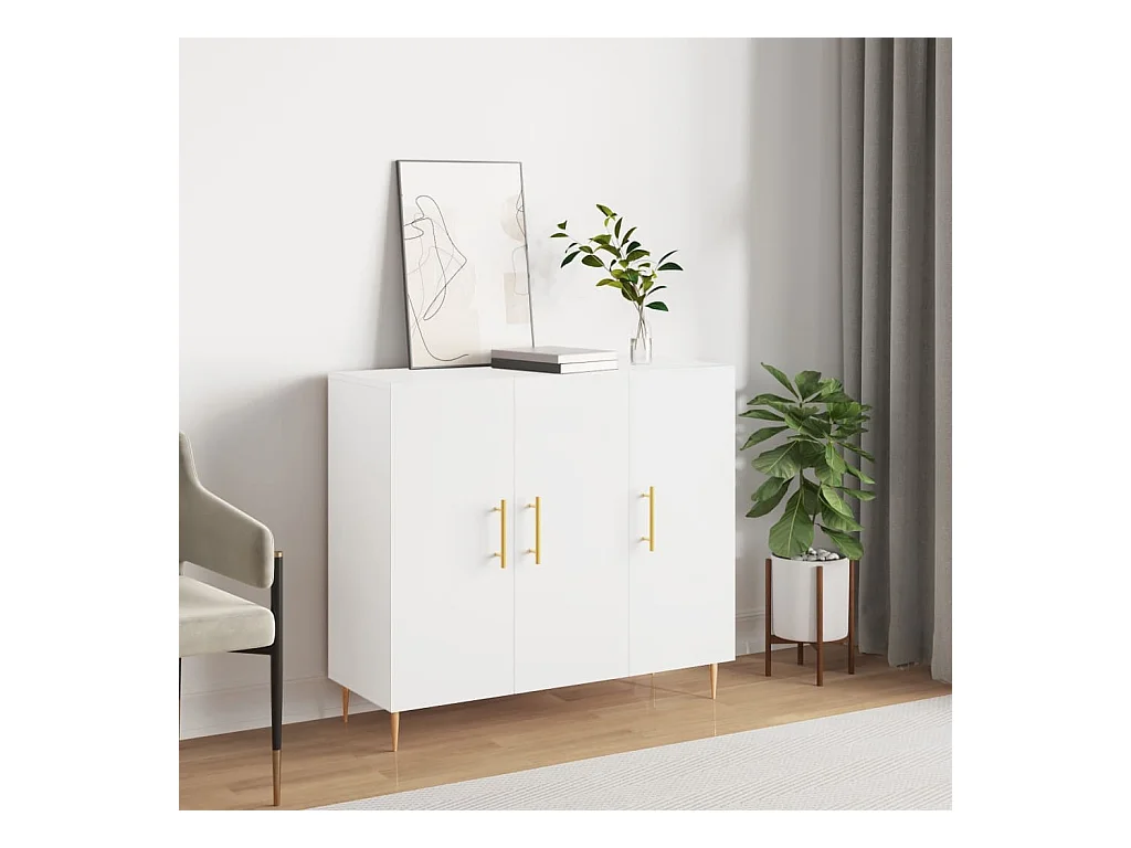 Buffet | Bahut | Meuble de rangement blanc brillant 90x34x80 cm bois d'ingénierie