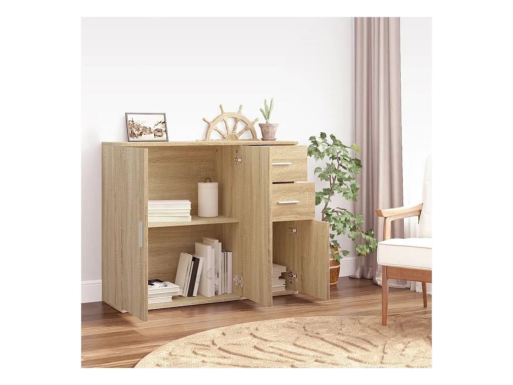 Buffet | Bahut | Meuble de rangement chêne artisanal 91x28x75 cm bois d'ingénierie