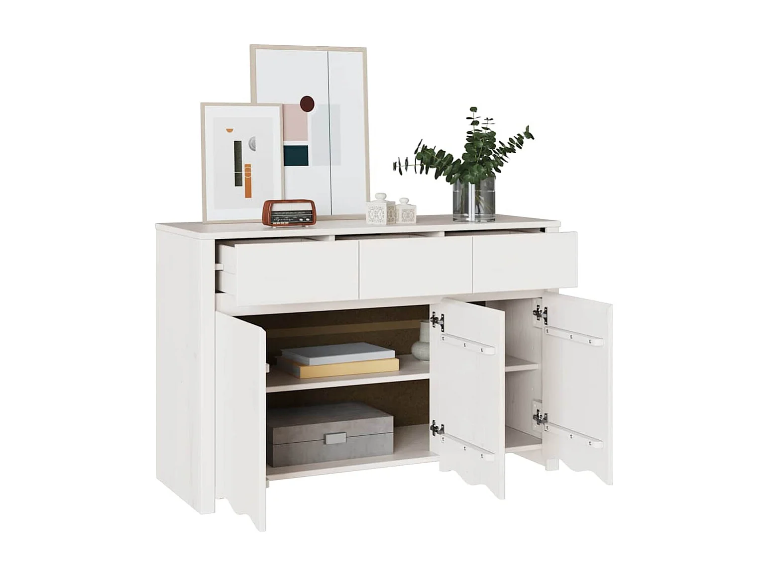 Buffet | Bahut | Meuble de rangement "DRAMMEN" Blanc 114x43x75,5 cm en Bois Massif de Pin