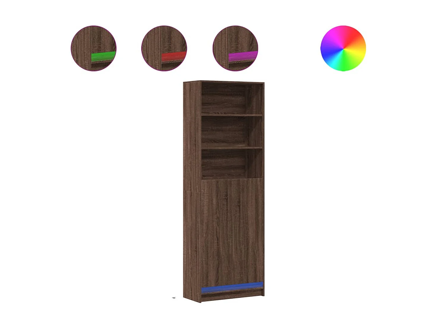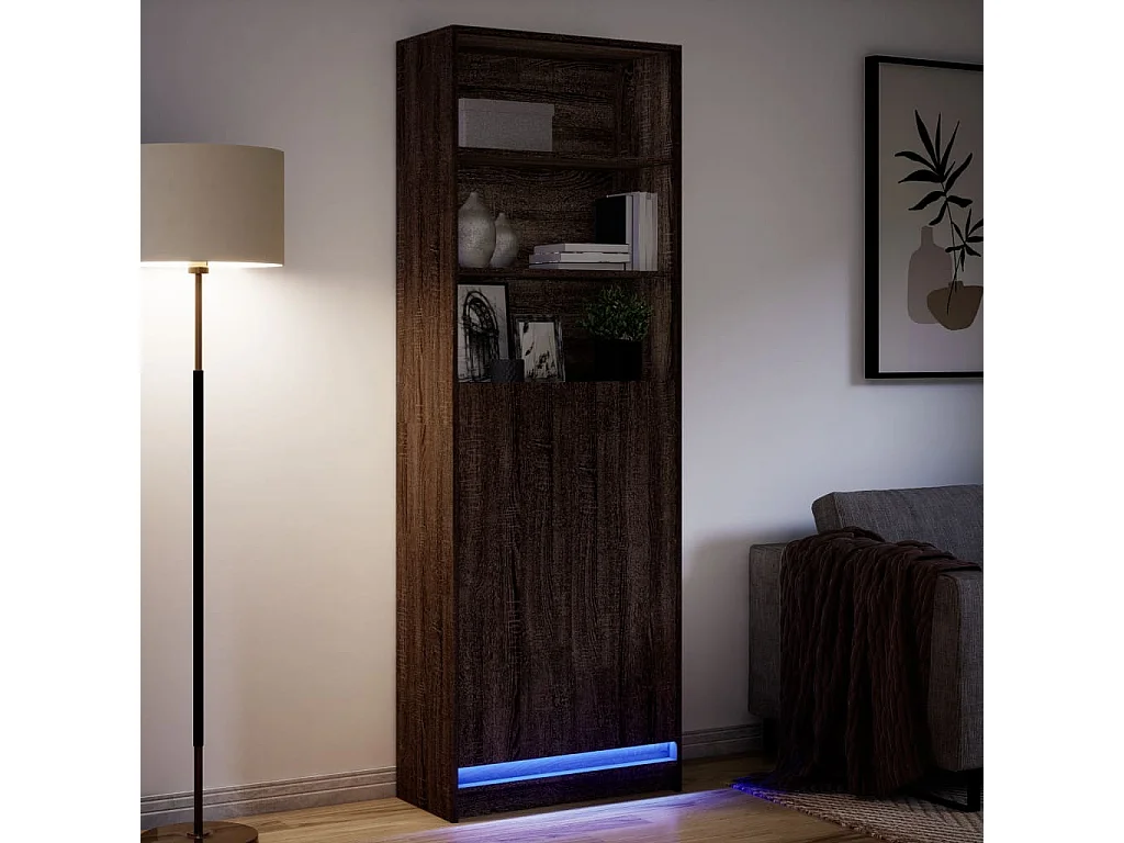 Buffet | Bahut | Meuble de rangement haut avec LED chêne marron 69x32,5x200cm bois ingénierie