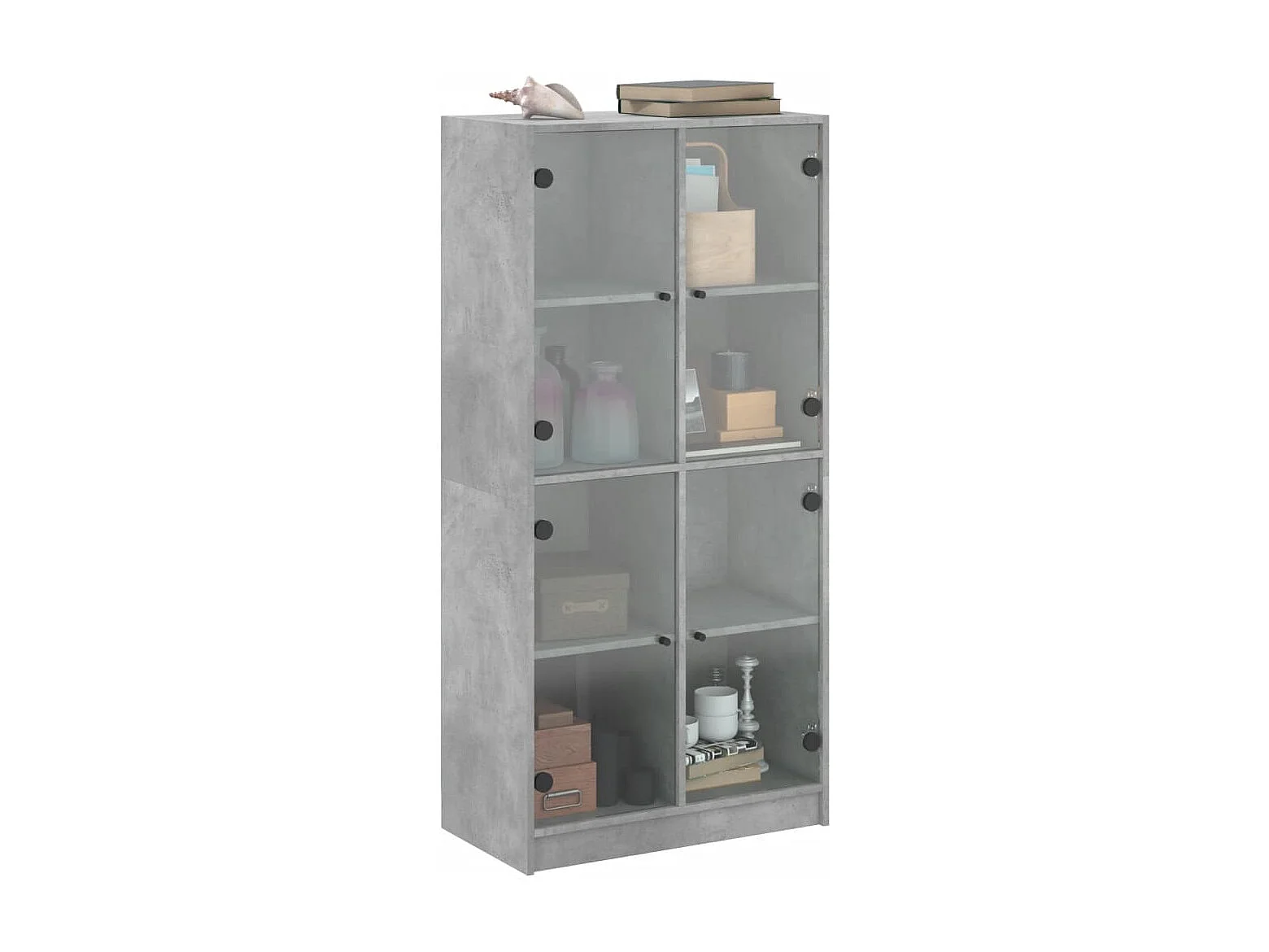 Buffet | Bahut | Meuble de rangement haut avec portes gris béton 68x37x142 cm bois ingénierie