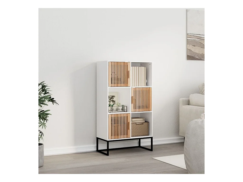 Buffet | Bahut | Meuble de rangement haut blanc 70x35x125 cm bois d'ingénierie