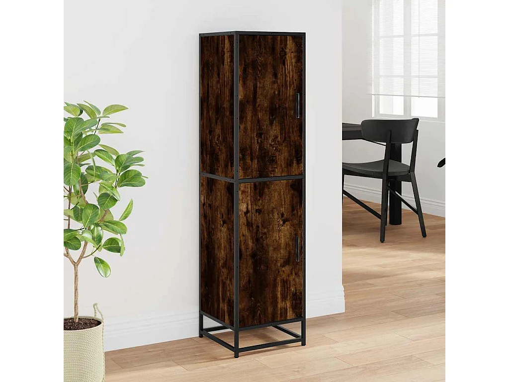Buffet haut chêne fumé 35,5x35x139 cm bois d'ingénierie métal