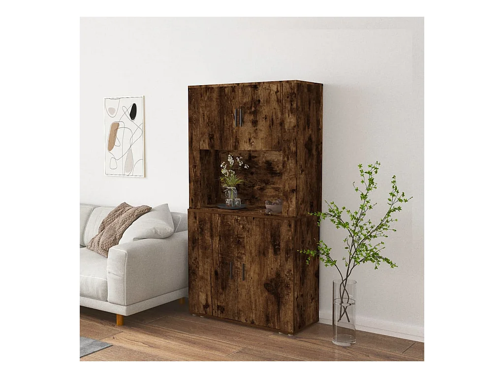 Buffet | Bahut | Meuble de rangement haut Chêne fumé Bois d'ingénierie