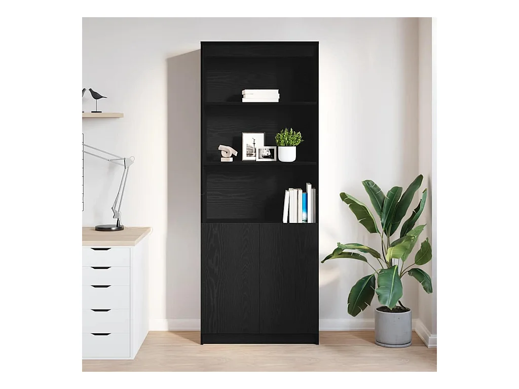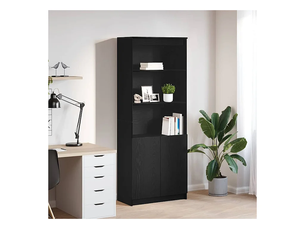 Buffet | Bahut | Meuble de rangement haut chêne noir 70x35x180 cm bois d'ingénierie