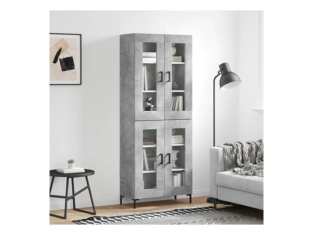 Buffet | Bahut | Meuble de rangement haut Gris béton 69,5x34x180 cm Bois d'ingénierie