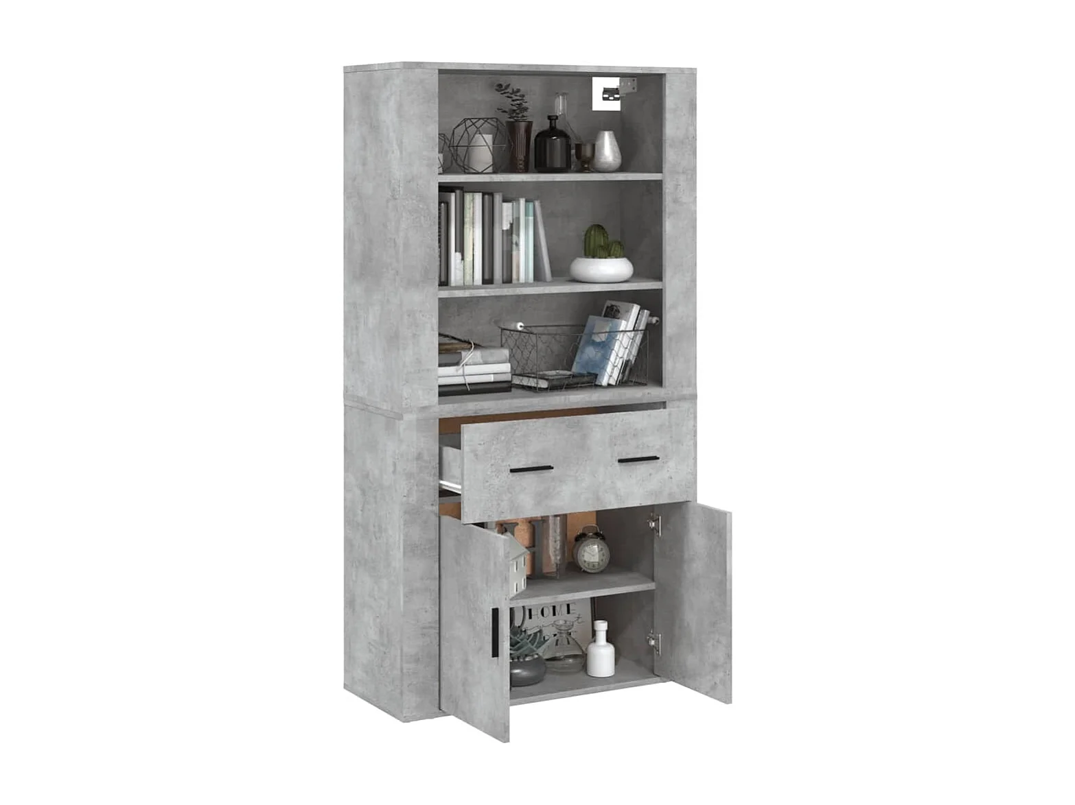 Buffet | Bahut | Meuble de rangement haut Gris béton Bois d'ingénierie