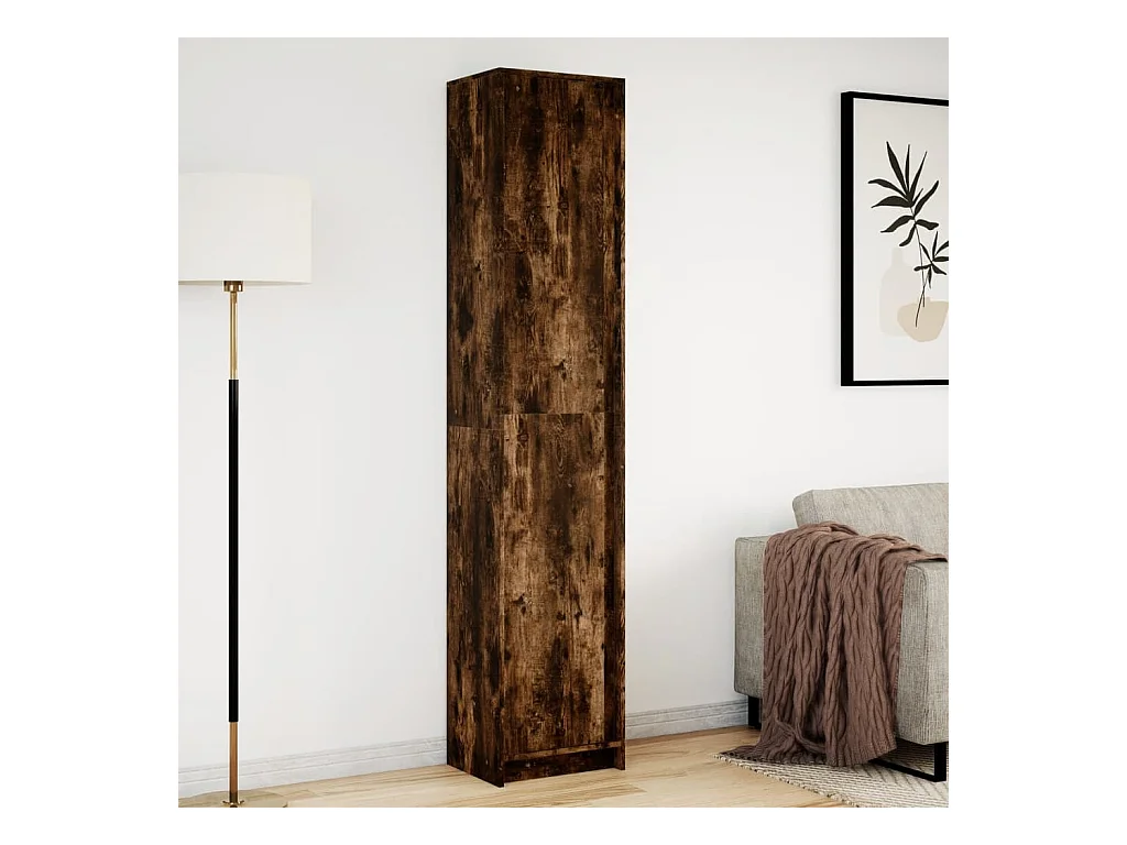 Buffet | Bahut | Meuble de rangement haut LED chêne fumé 41,5x32,5x200 cm bois d’ingénierie
