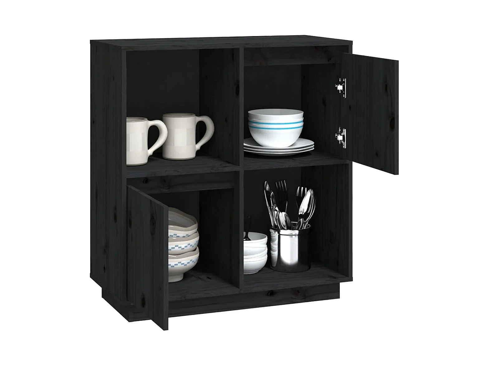 Buffet | Bahut | Meuble de rangement noir 74x35x80 cm bois massif de pin