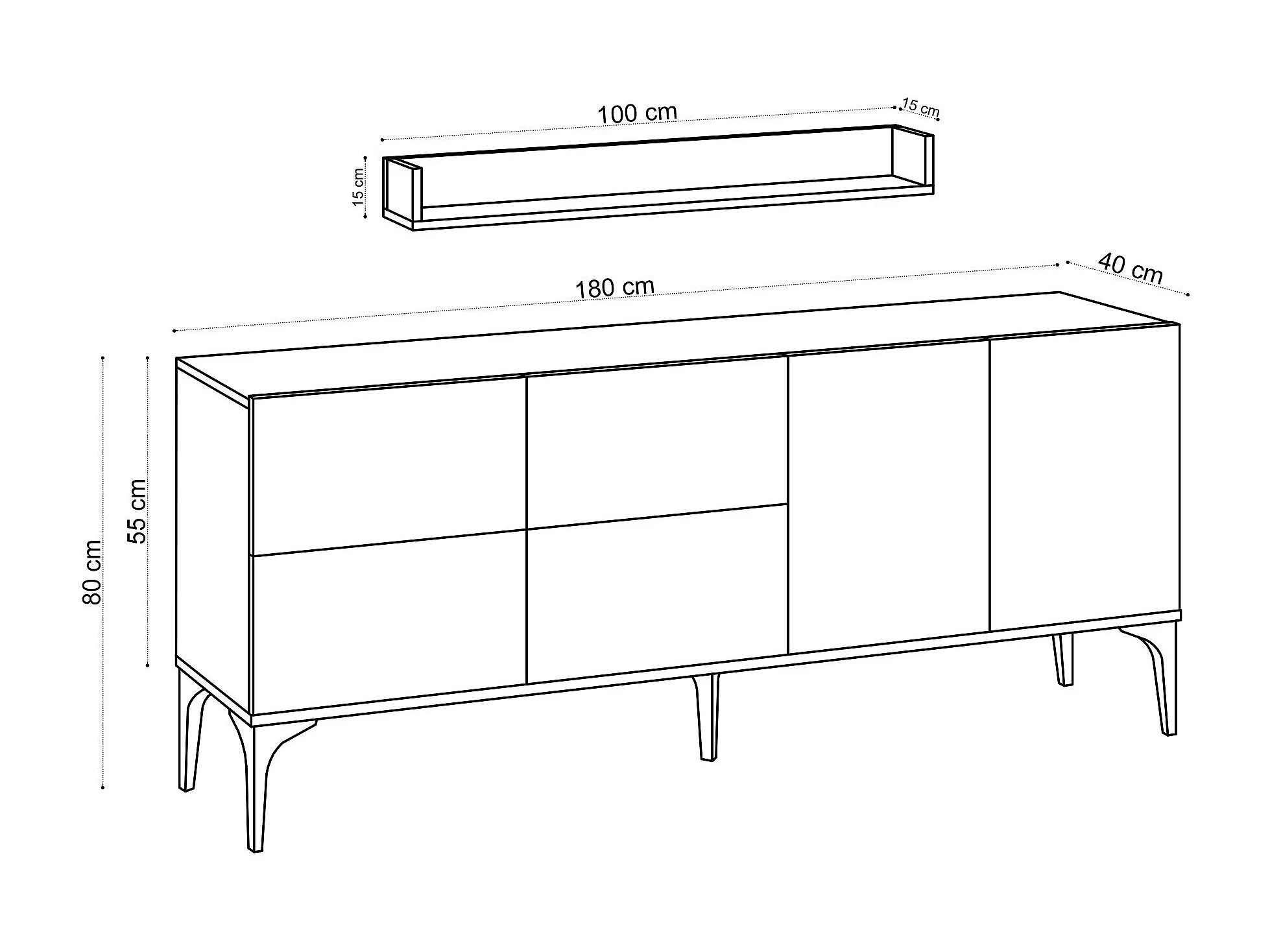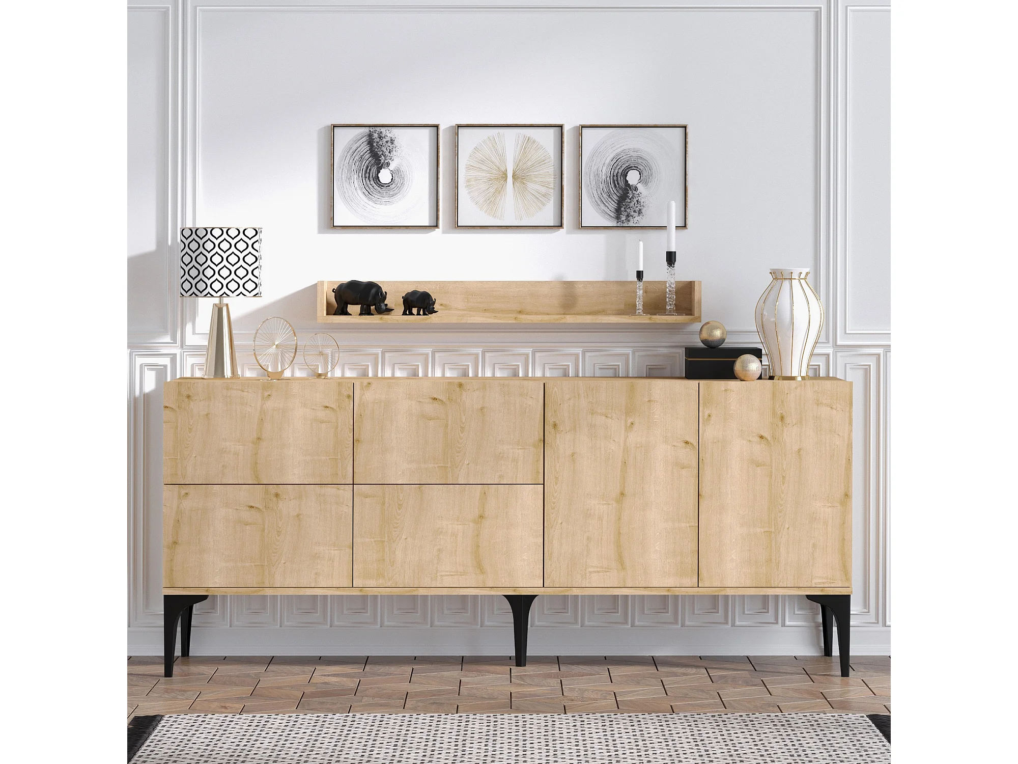 Buffet bas 6 portes avec étagère Dyna L180cm Chêne clair