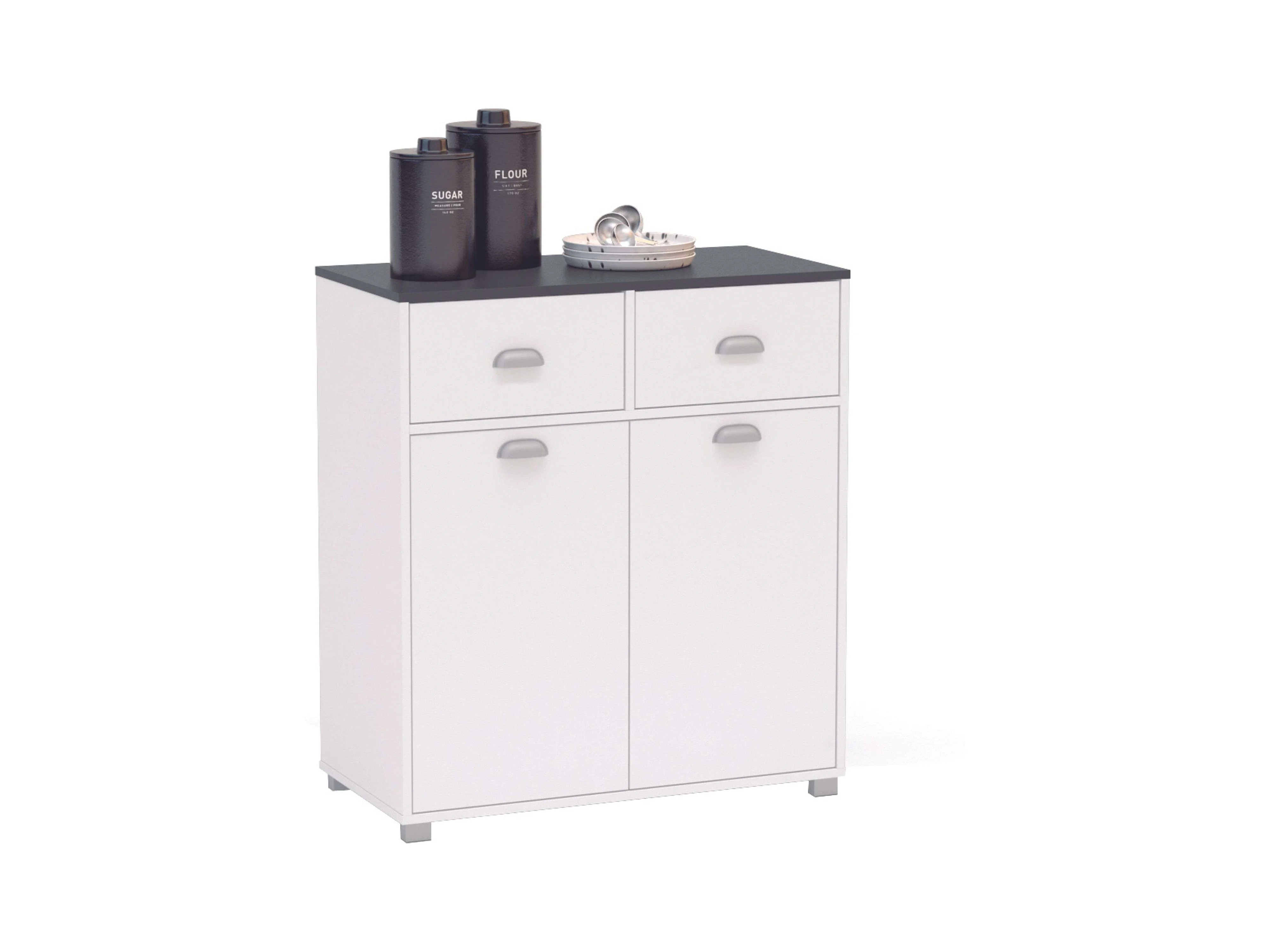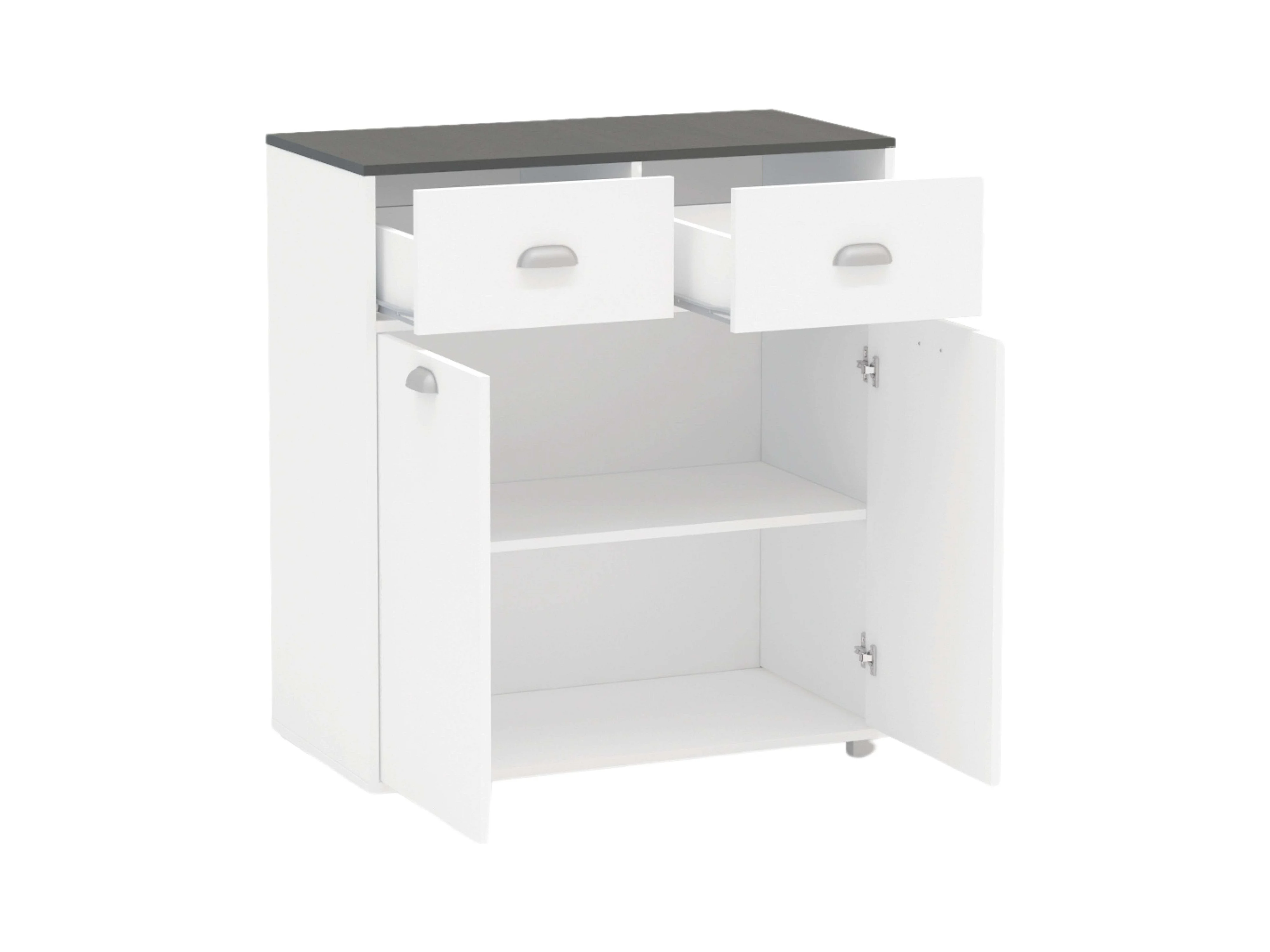 Buffet bas Asfeld 90x80x40 cm Blanc 2 portes 2 tiroirs Cuisine