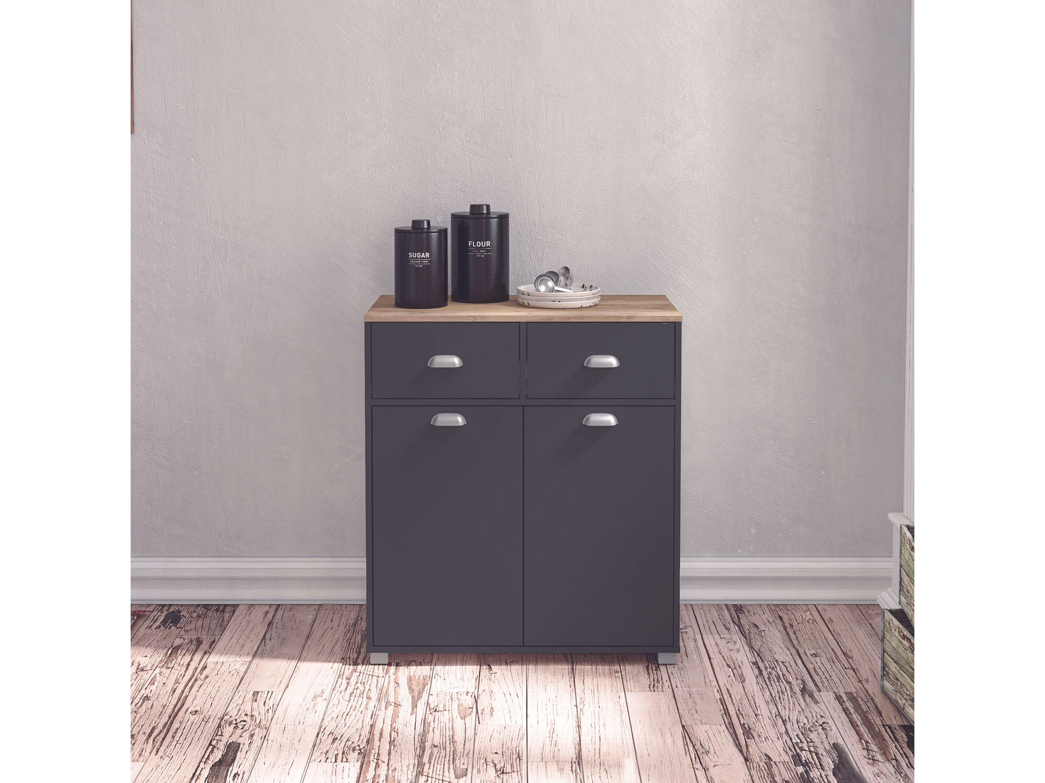 Buffet bas de cuisine Asfeld gris graphite 2 portes et tiroirs 90 x 80 x 40 cm