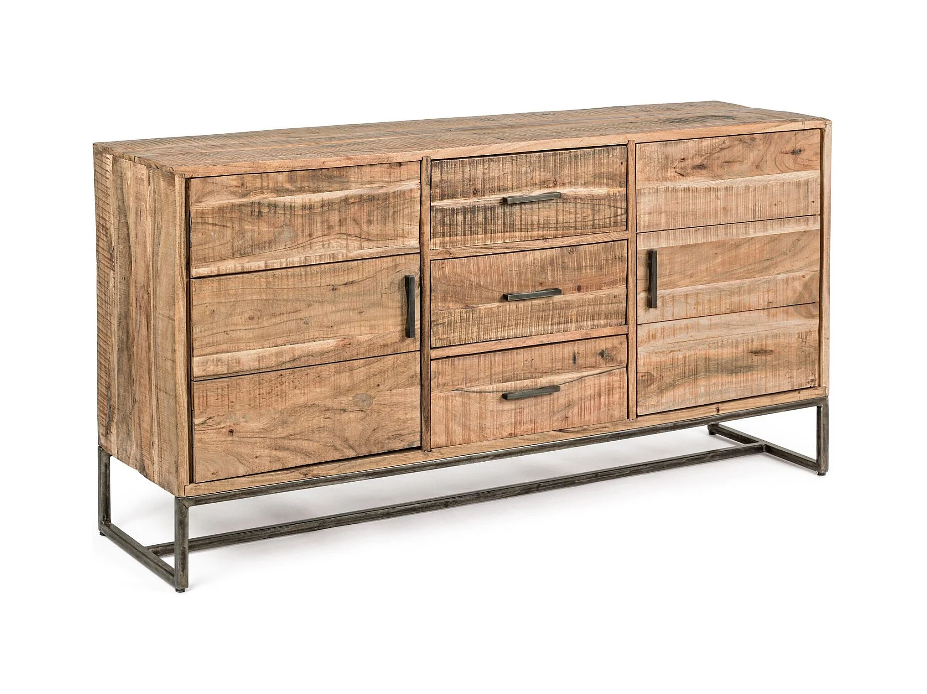 Buffet bas en bois d'acacia 2 portes 3 tiroirs bois et métal - MICHIGAN