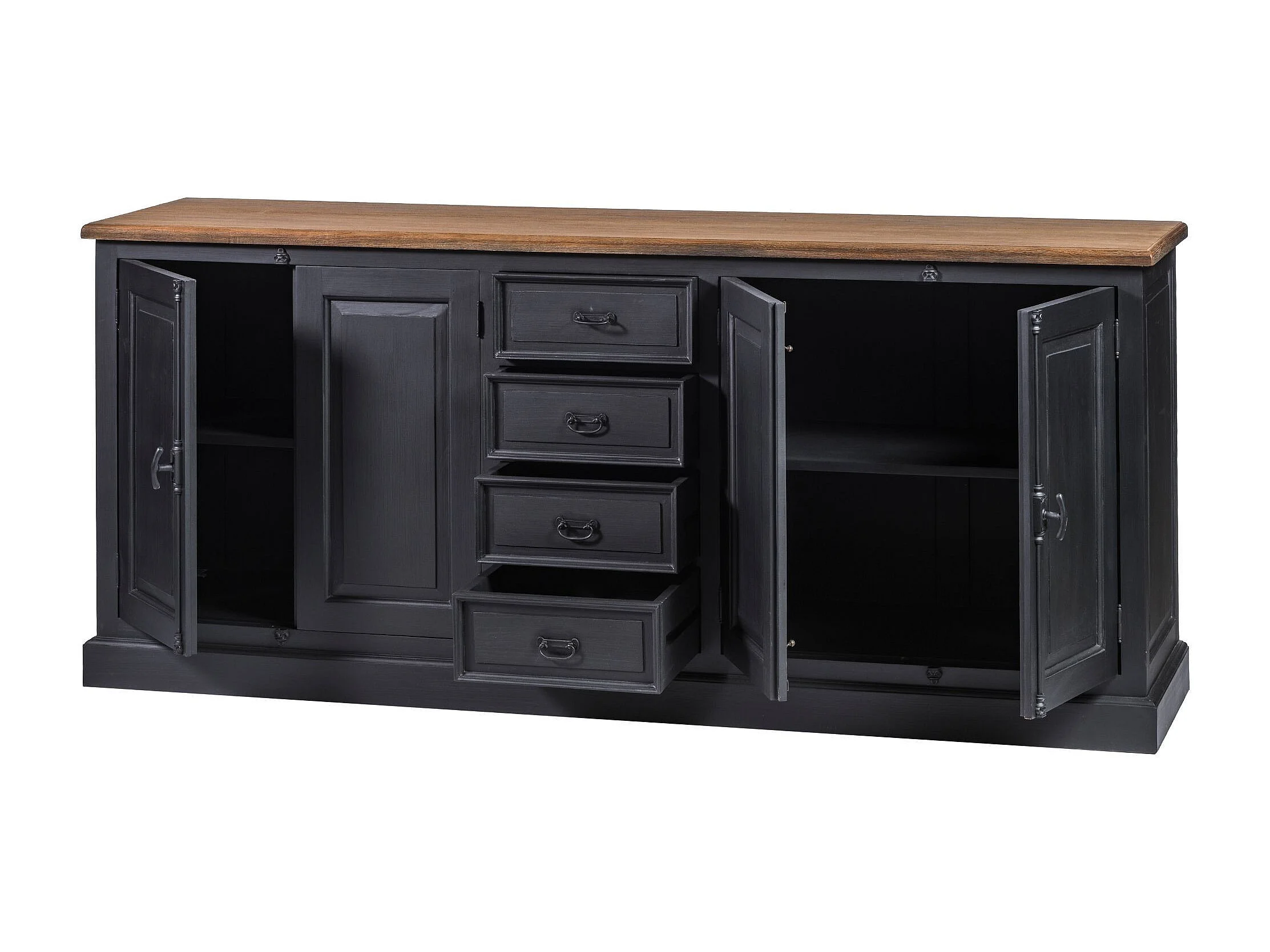 Buffet bas en bois noir 4 portes 4 tiroirs - DALILA