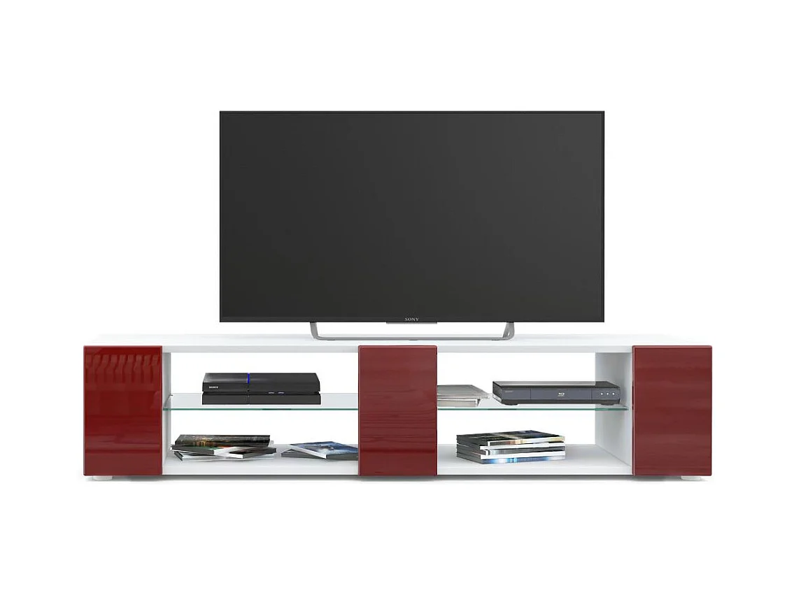 TV Board Movie V2 Game On Lowboard 138,5 x 39 x 39 cm , caisson en blanc mat, façades en bordeaux haute brillance