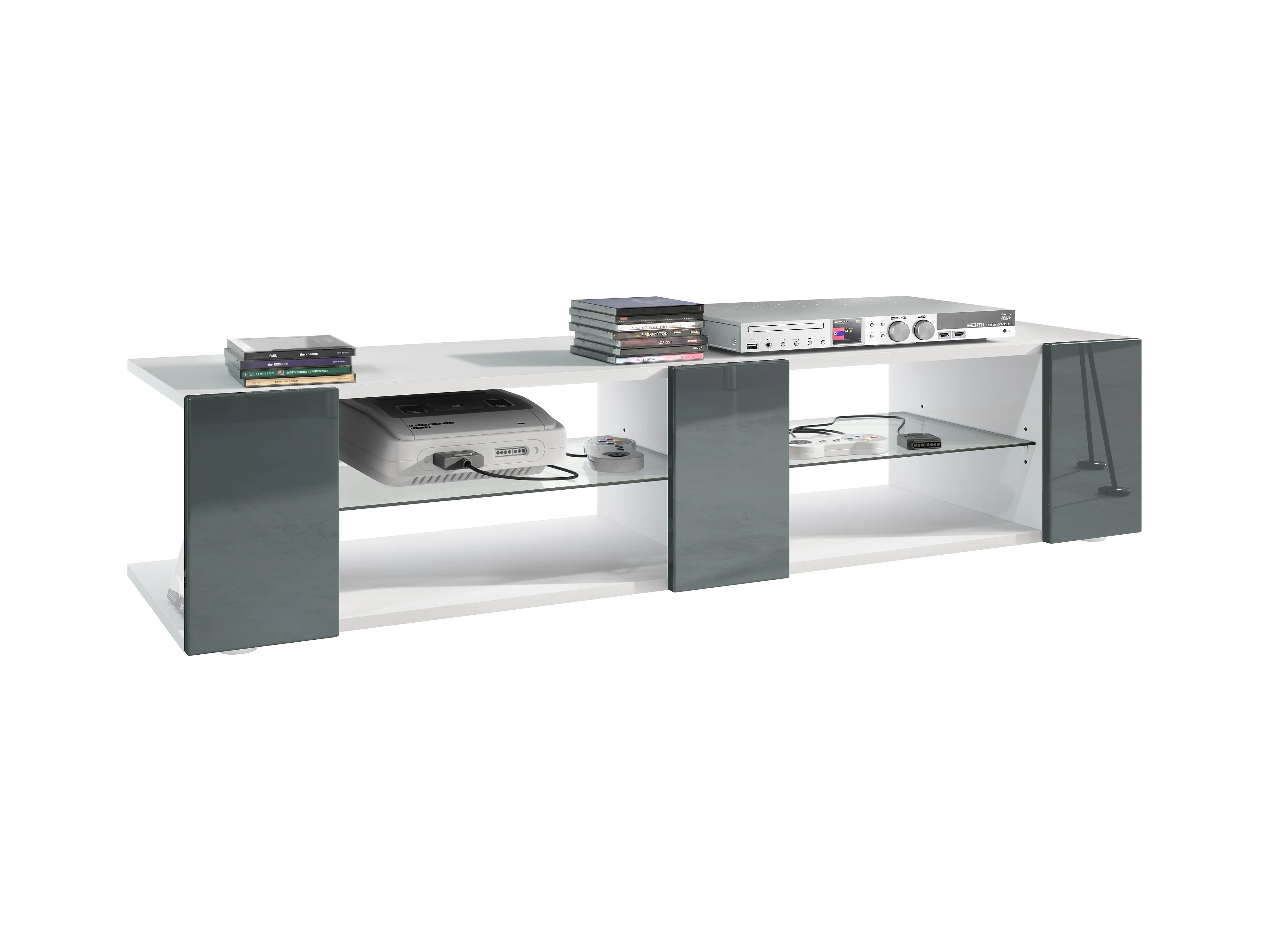 TV Board Movie V2 Game On Lowboard 138,5 x 39 x 39 cm , caisson en blanc mat, façades en gris haute brillance