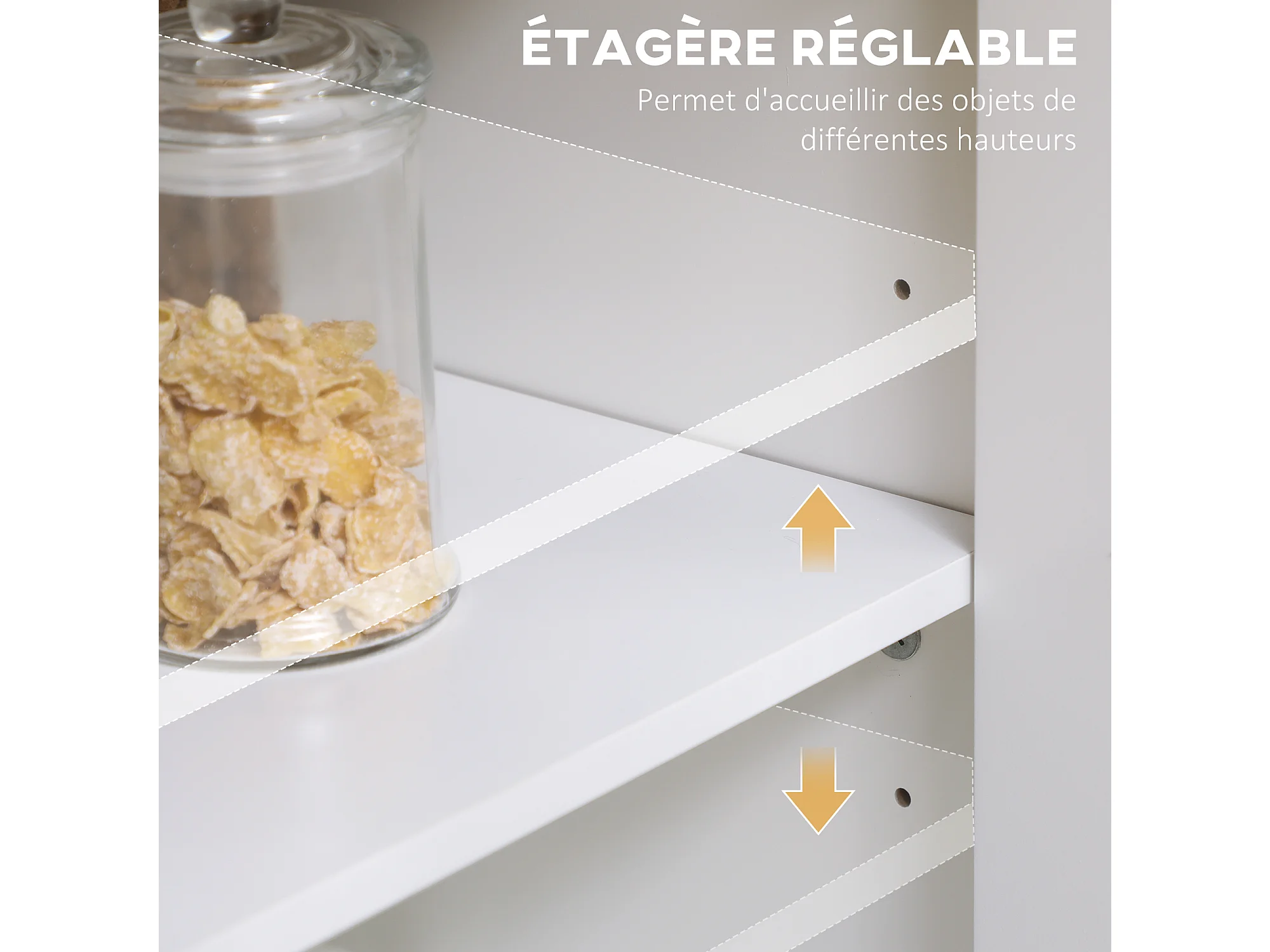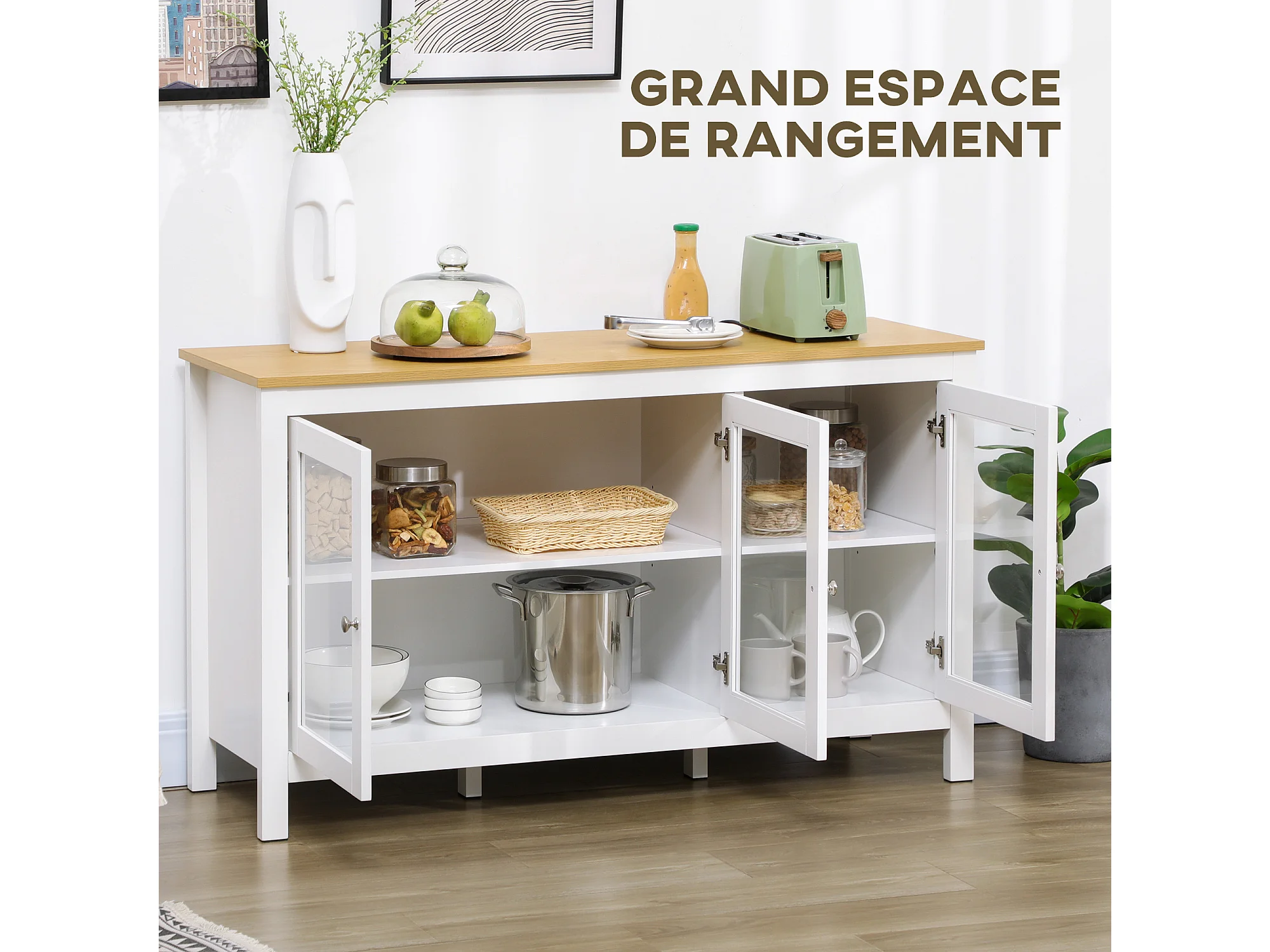 Buffet style classique chic multi-rangement 2 portes 2 étagères réglables 2 tiroirs coulissants placard 2 portes MDF blanc plateau aspect bois clair