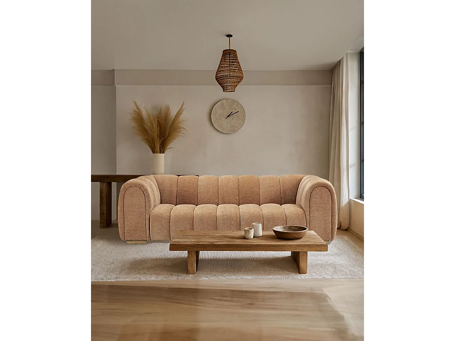 Cara - Canapé 3 places en tissus velours camel