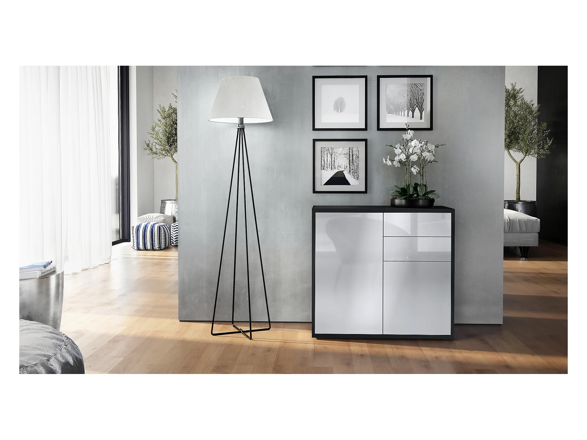 Buffet Ben, Commode avec 2 portes et 2 tiroirs, Noir mat/Blanc haute brillance (79 x 74 x 36 cm)
