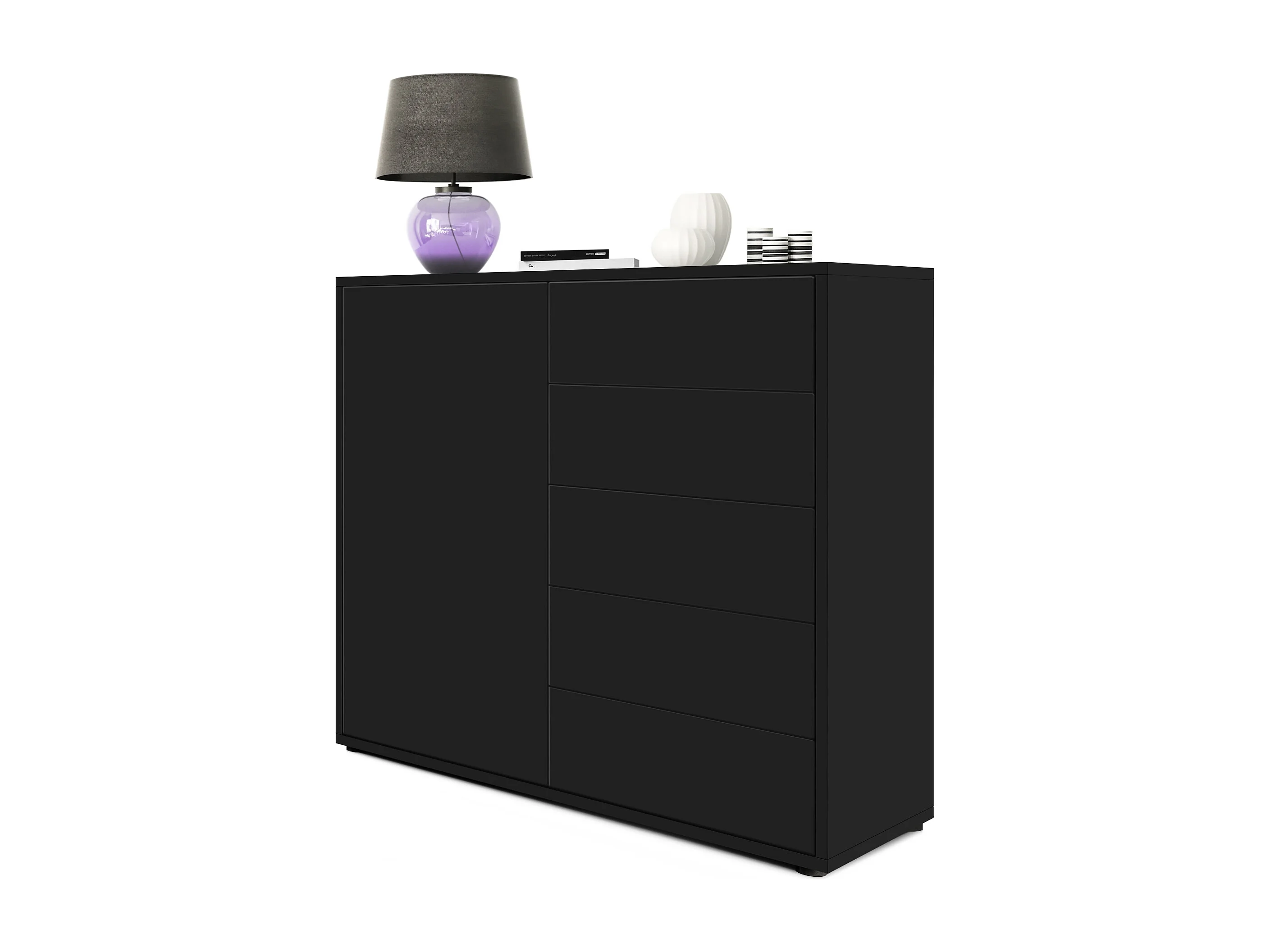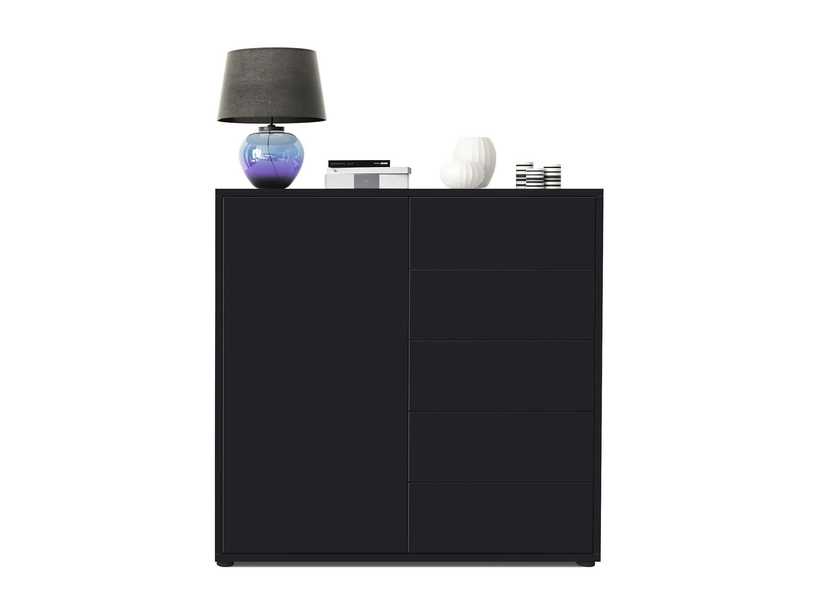 Buffet Ben V2, Commode avec 1 portes et 5 tiroirs, Noir mat/Noir mat (79 x 74 x 36 cm)