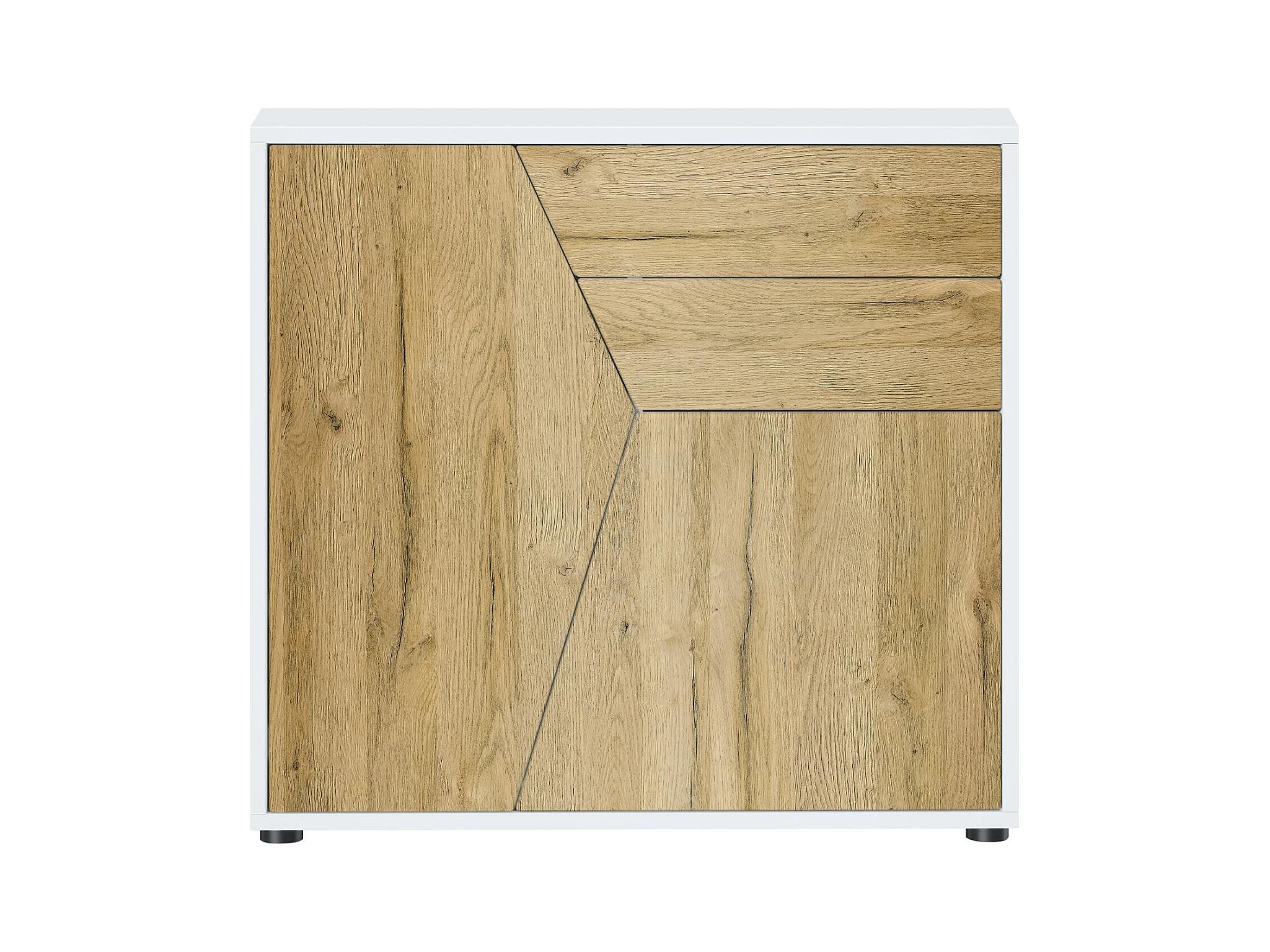 Buffet Benny, Commode avec 2 portes et 2 tiroirs, Blanc mat/Chêne Nature (79 x 74 x 36 cm)
