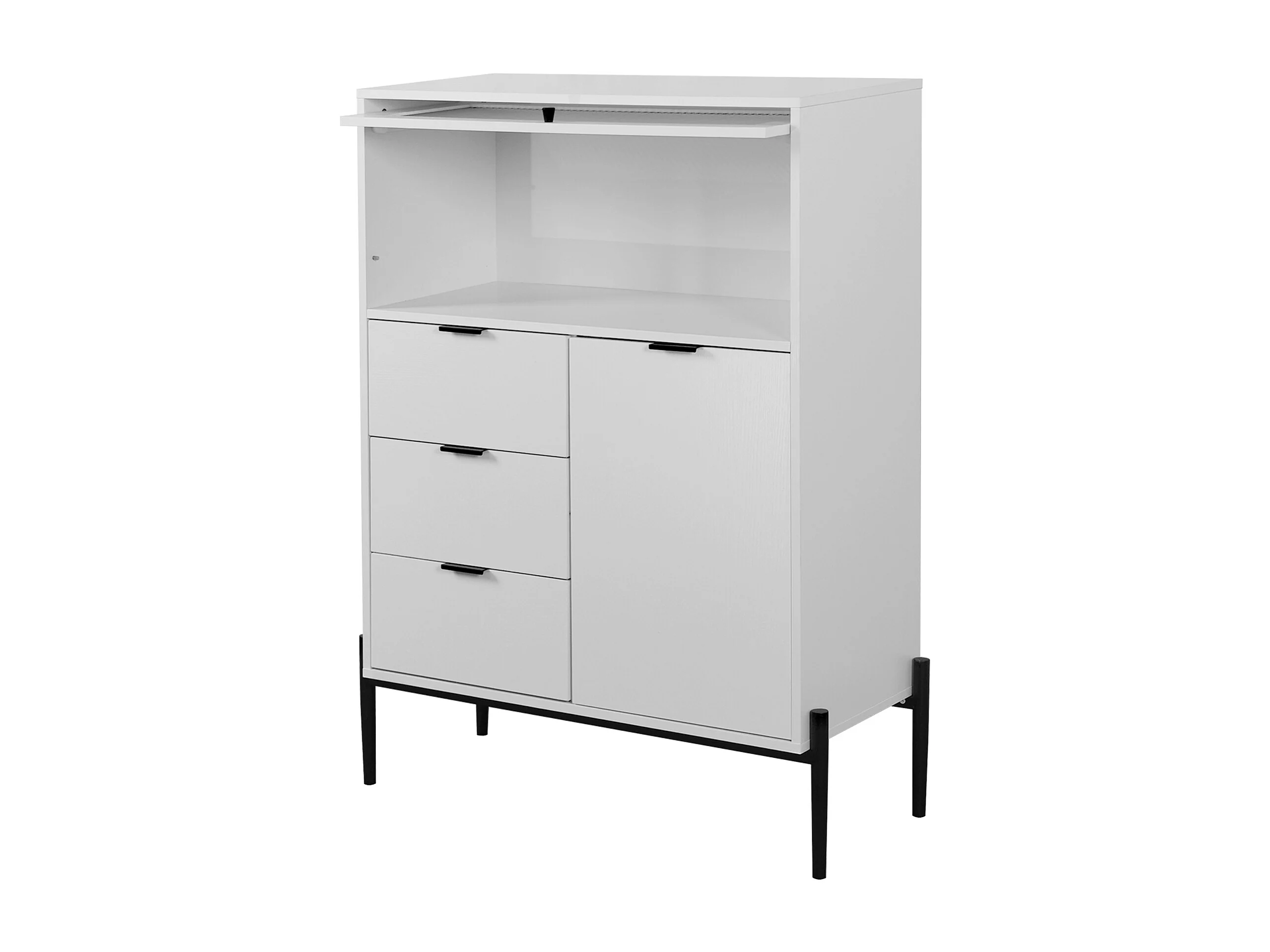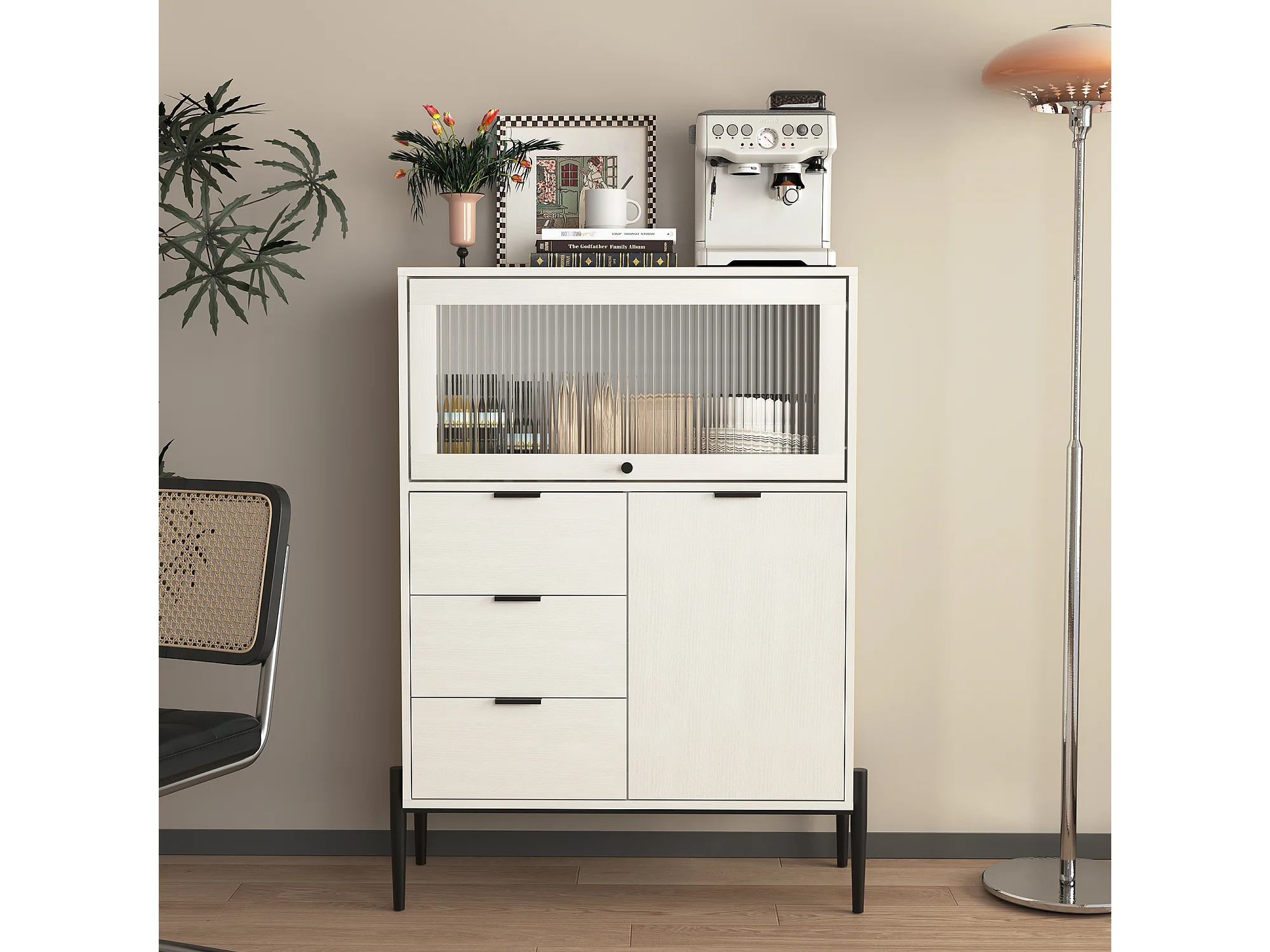 Buffet blanc 85cm - Buffet avec 3 tiroirs et 1 porte en bois 1 porte vitrée - pour salle à manger et salon