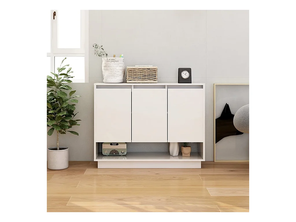 Buffet Blanc brillant 88x30x70 cm Bois d'ingénierie