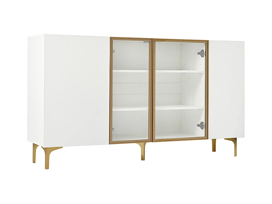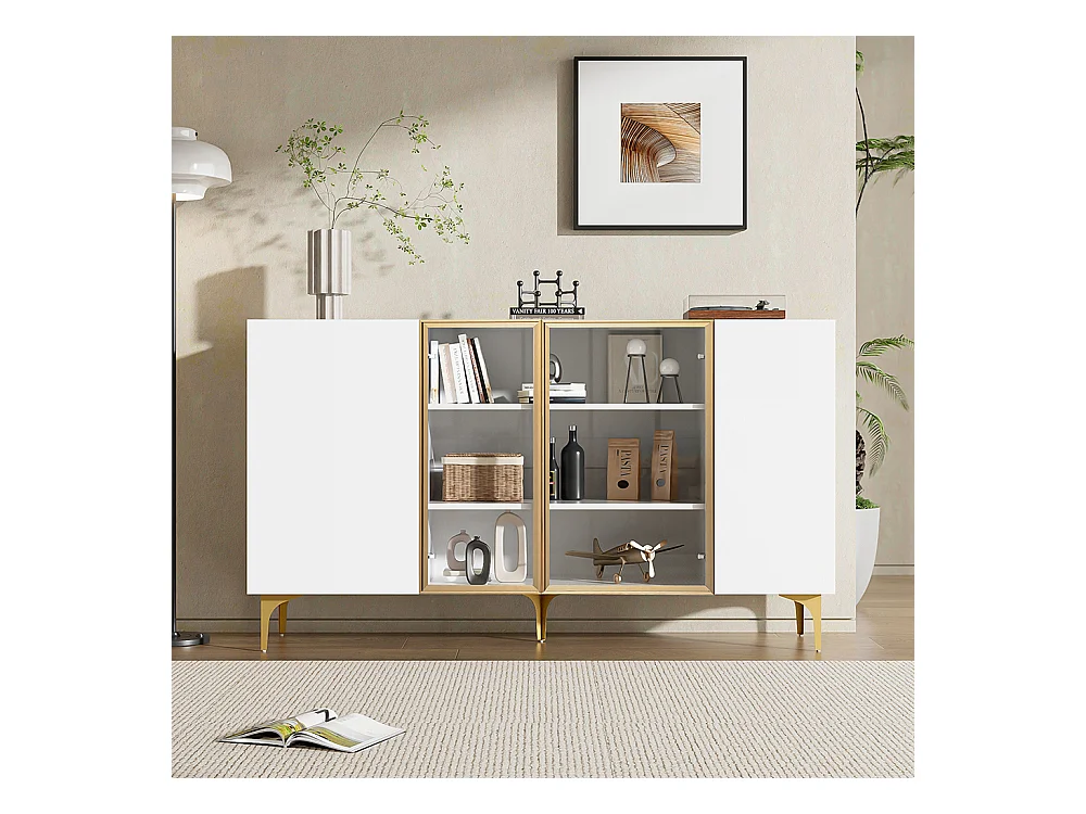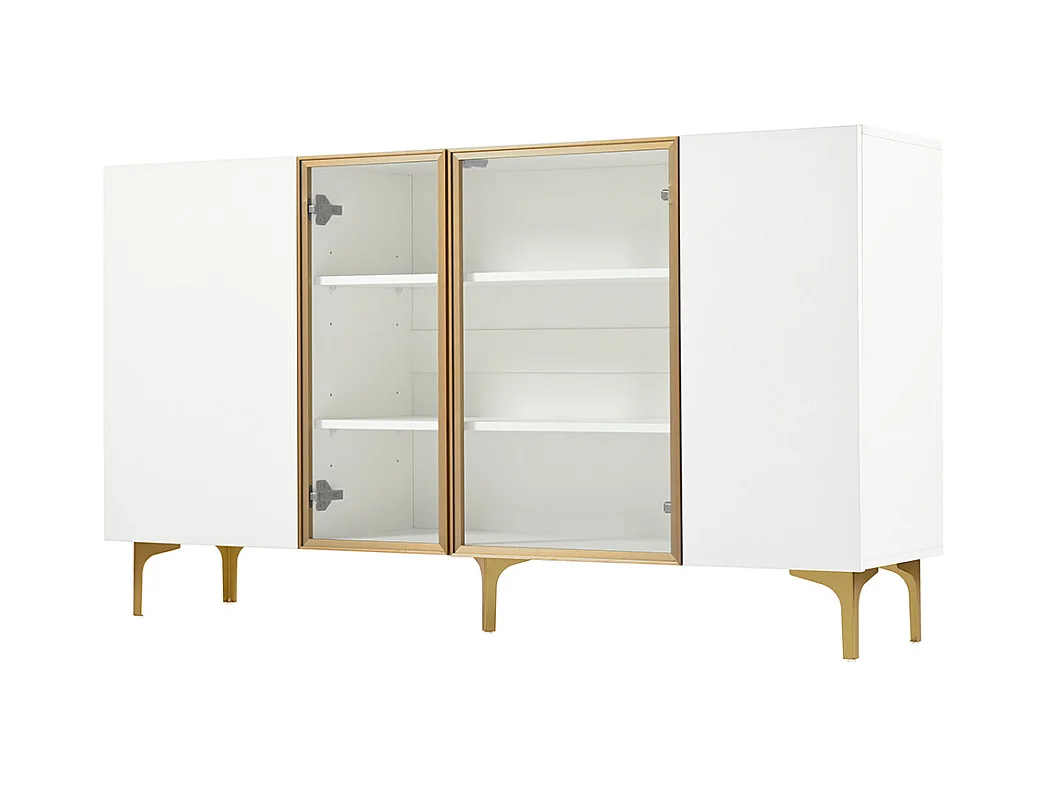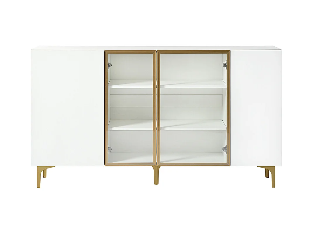 Buffet moderne à 4 portes design élégant en blanc et or corps en MDF avec pieds en métal étagères réglables en hauteur