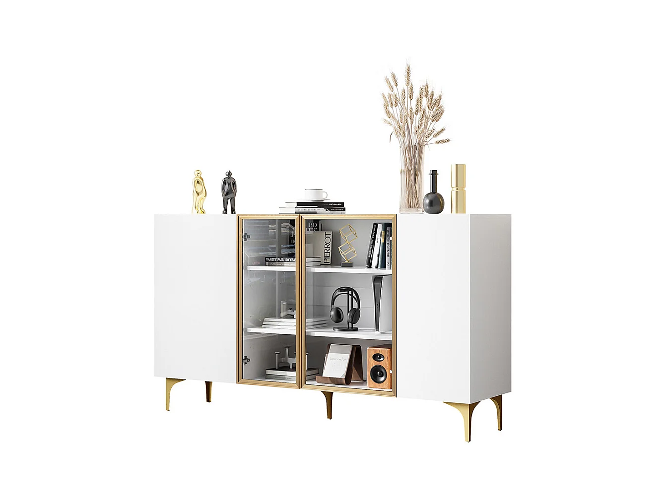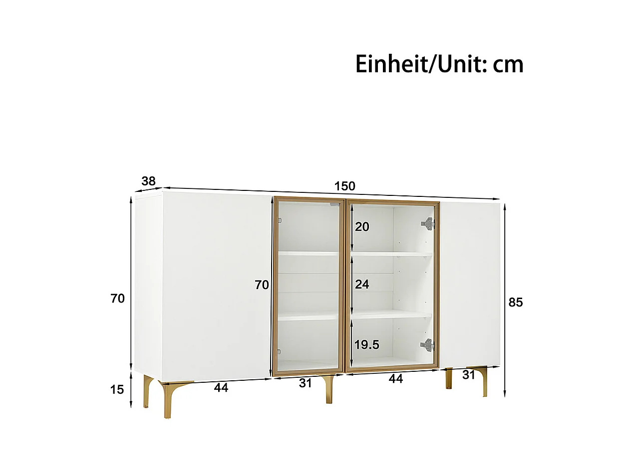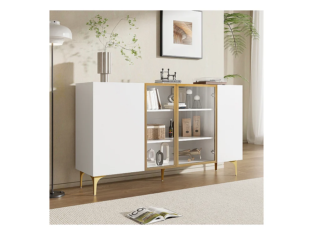 Buffet moderne à 4 portes design élégant en blanc et or corps en MDF avec pieds en métal étagères réglables en hauteur