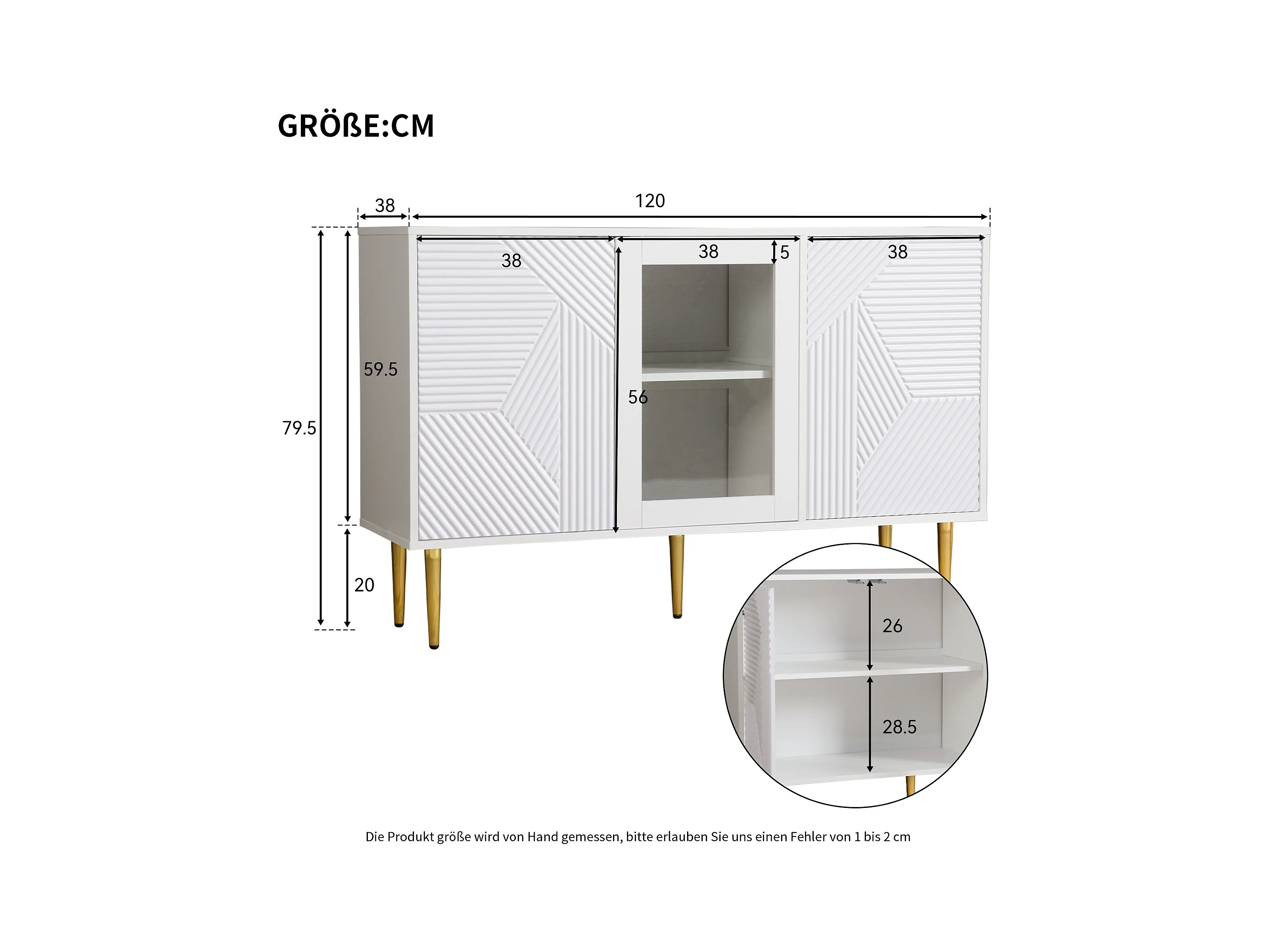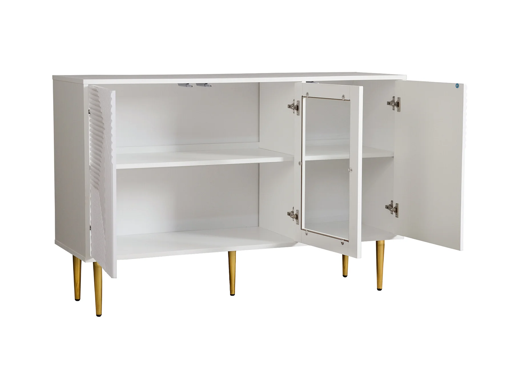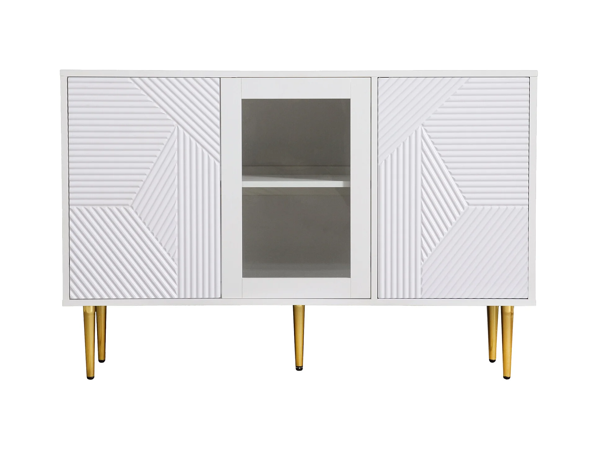 Buffet blanc avec 3 portes de rangement et pieds en métal - pour salon et salle à manger