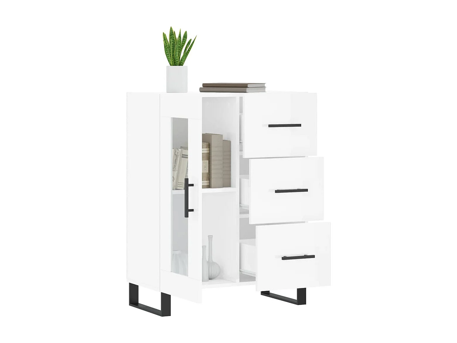 Buffet Blanc brillant 69,5x34x90 Bois d'ingénierie