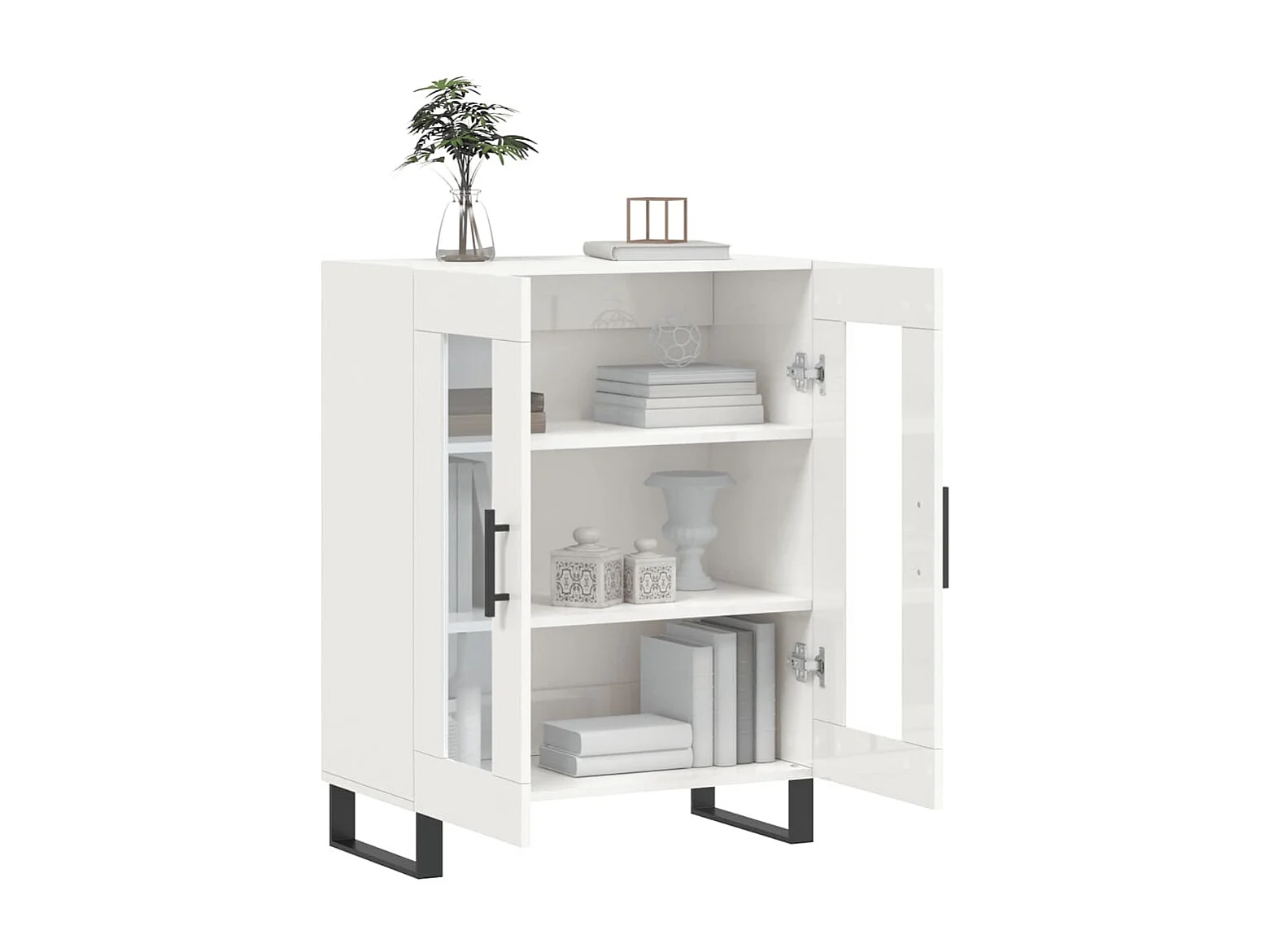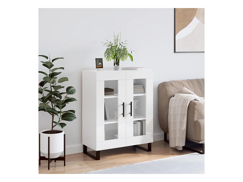 Buffet Blanc brillant 69,5x34x90 cm Bois d'ingénierie QWE43608
