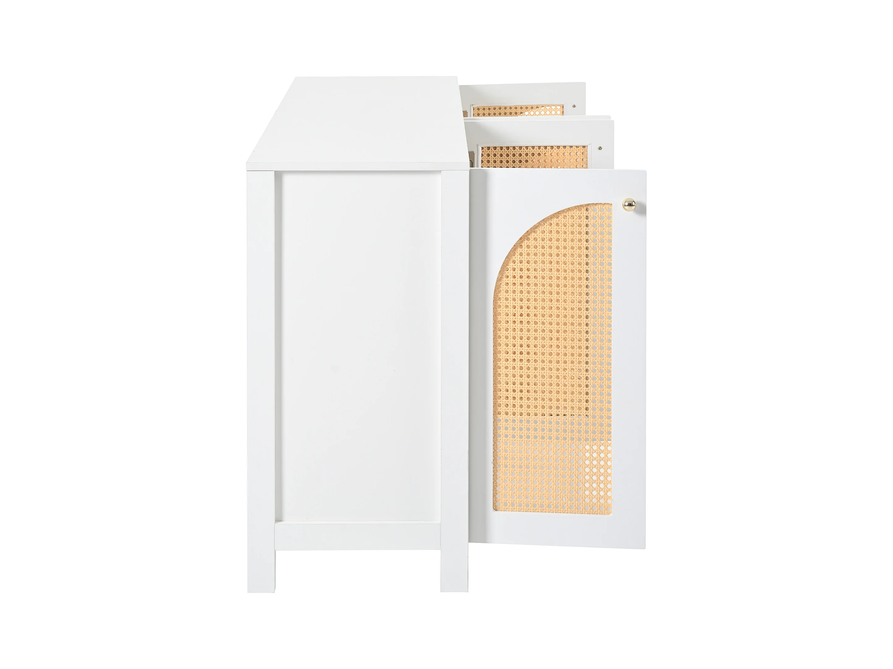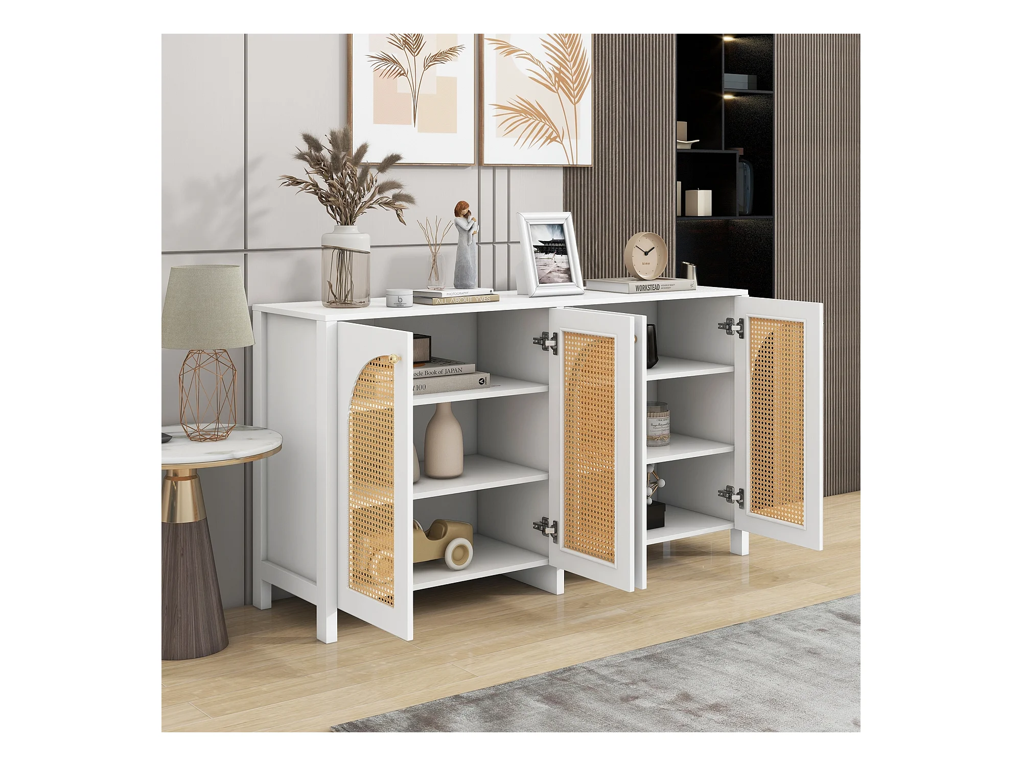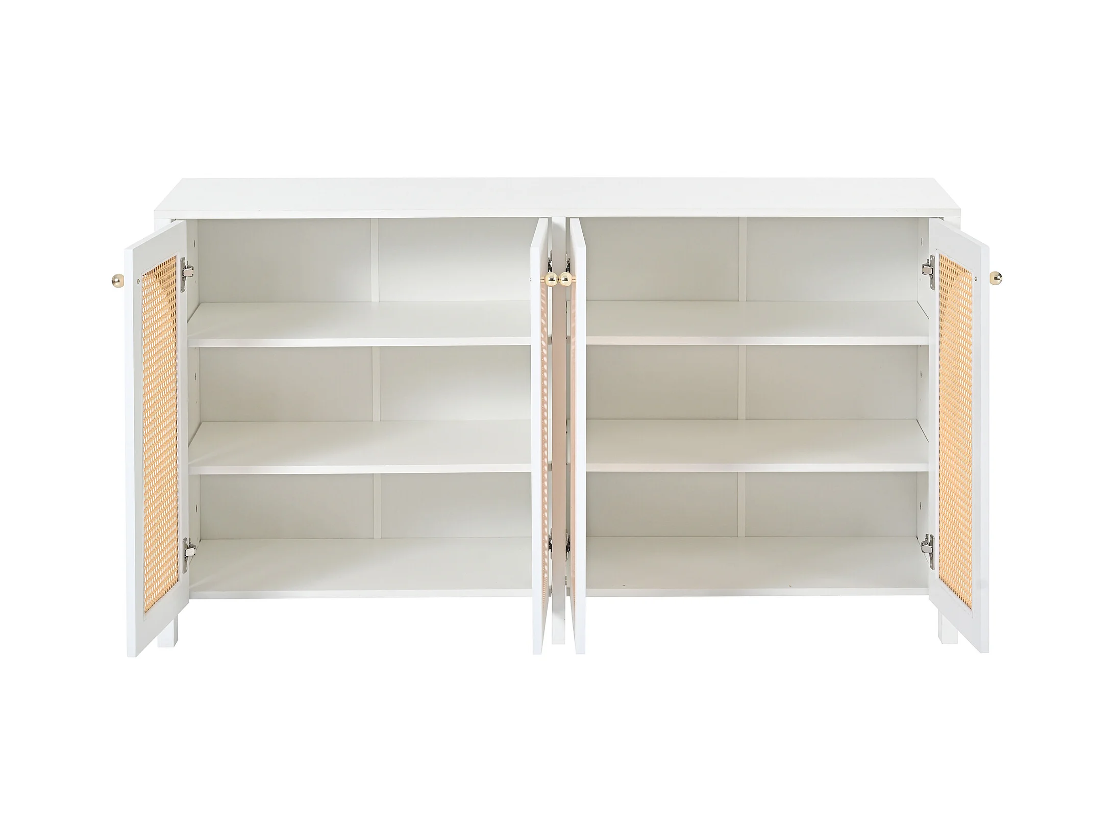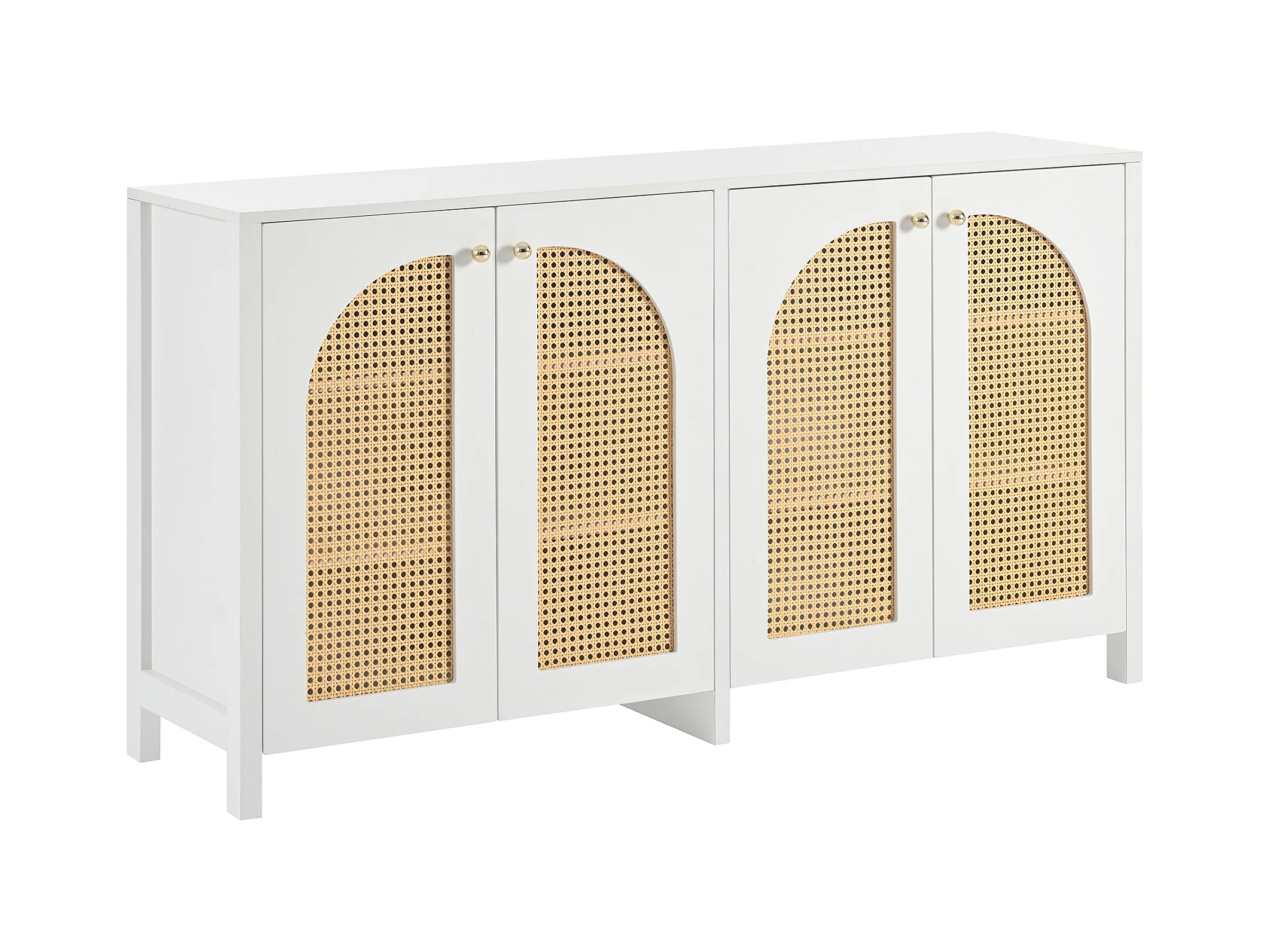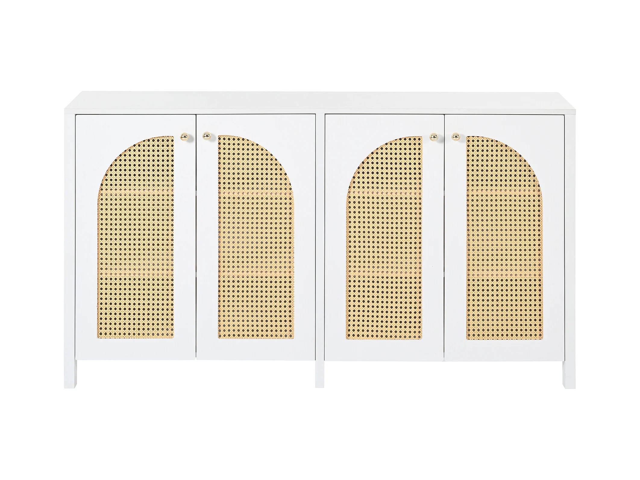 Buffet blanc - Buffet avec 4 portes en rotin et poignées en métal - pour salle à manger et salon