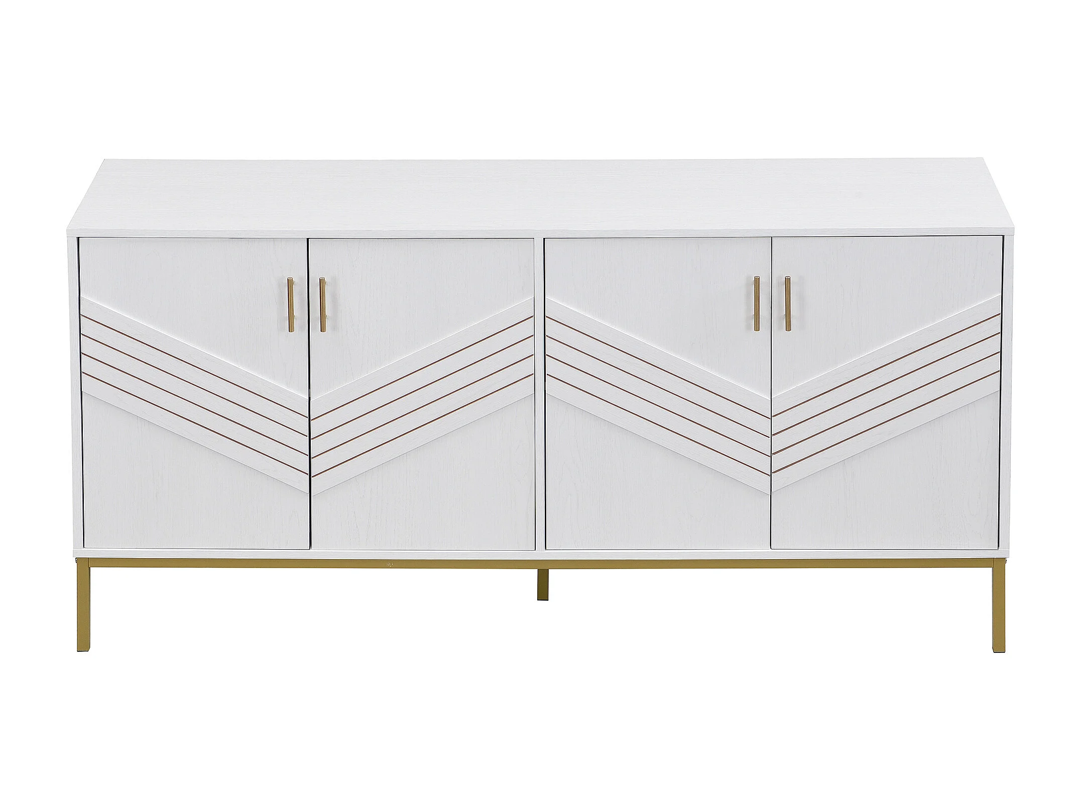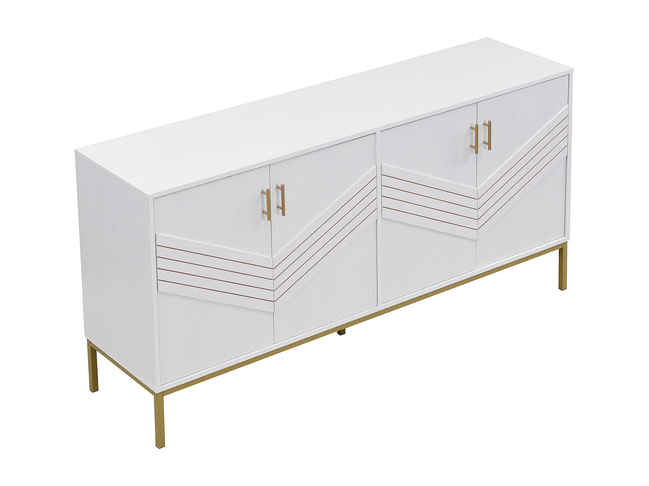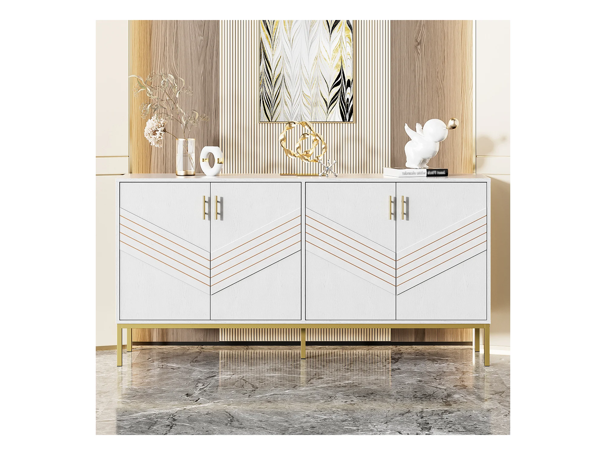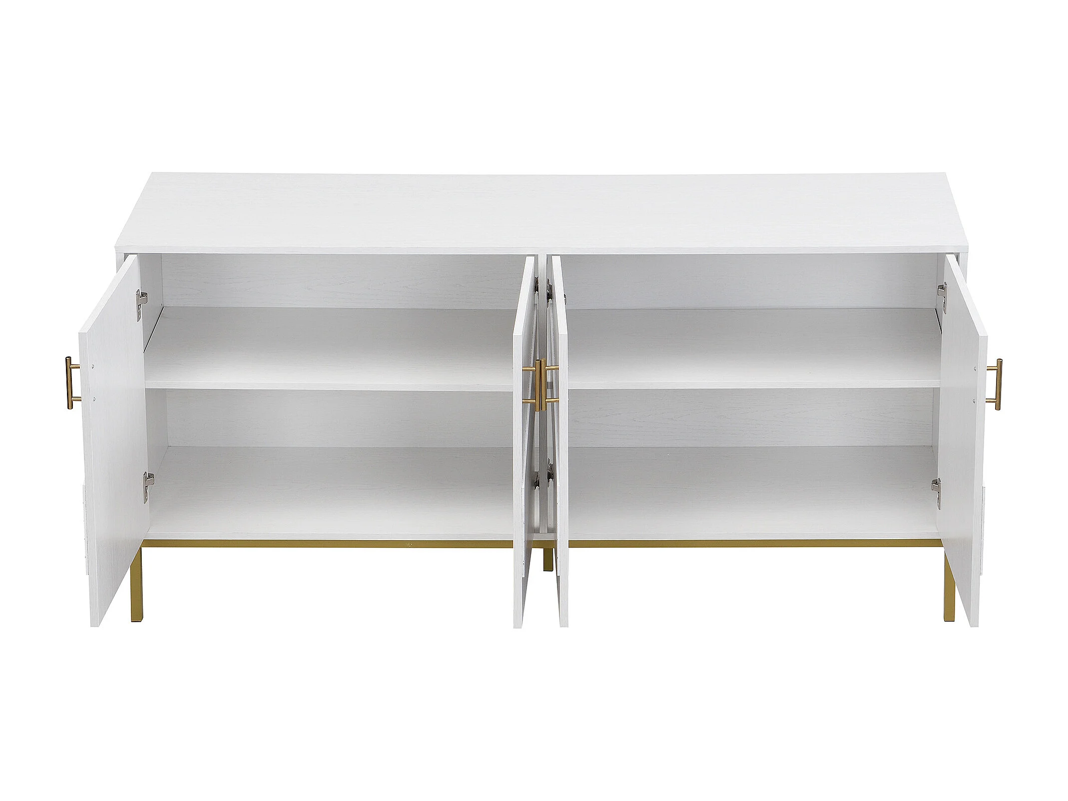 Buffet blanc - Buffet avec 4 portes et pieds en métal - étagères réglables en hauteur - pour salon et salle à manger