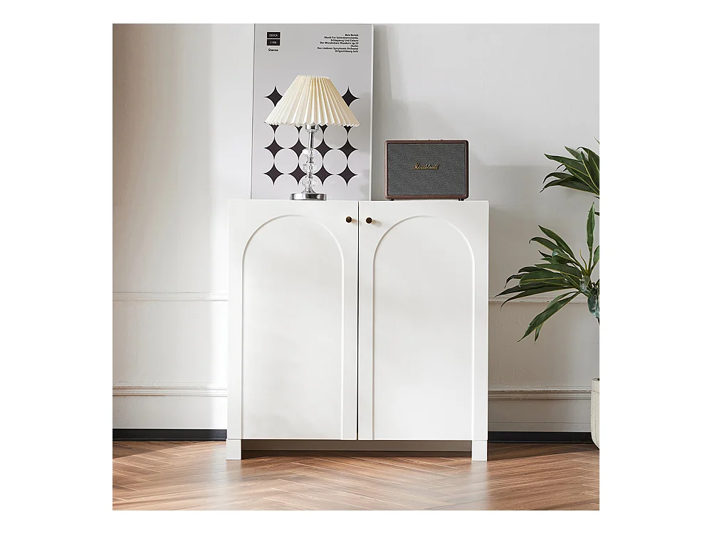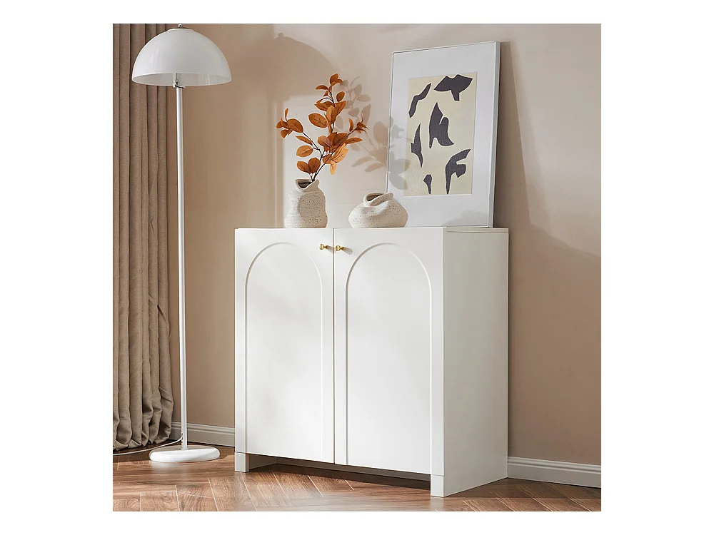 Buffet blanc commode meuble d'entrée 2 compartiments ouverts 4 portes