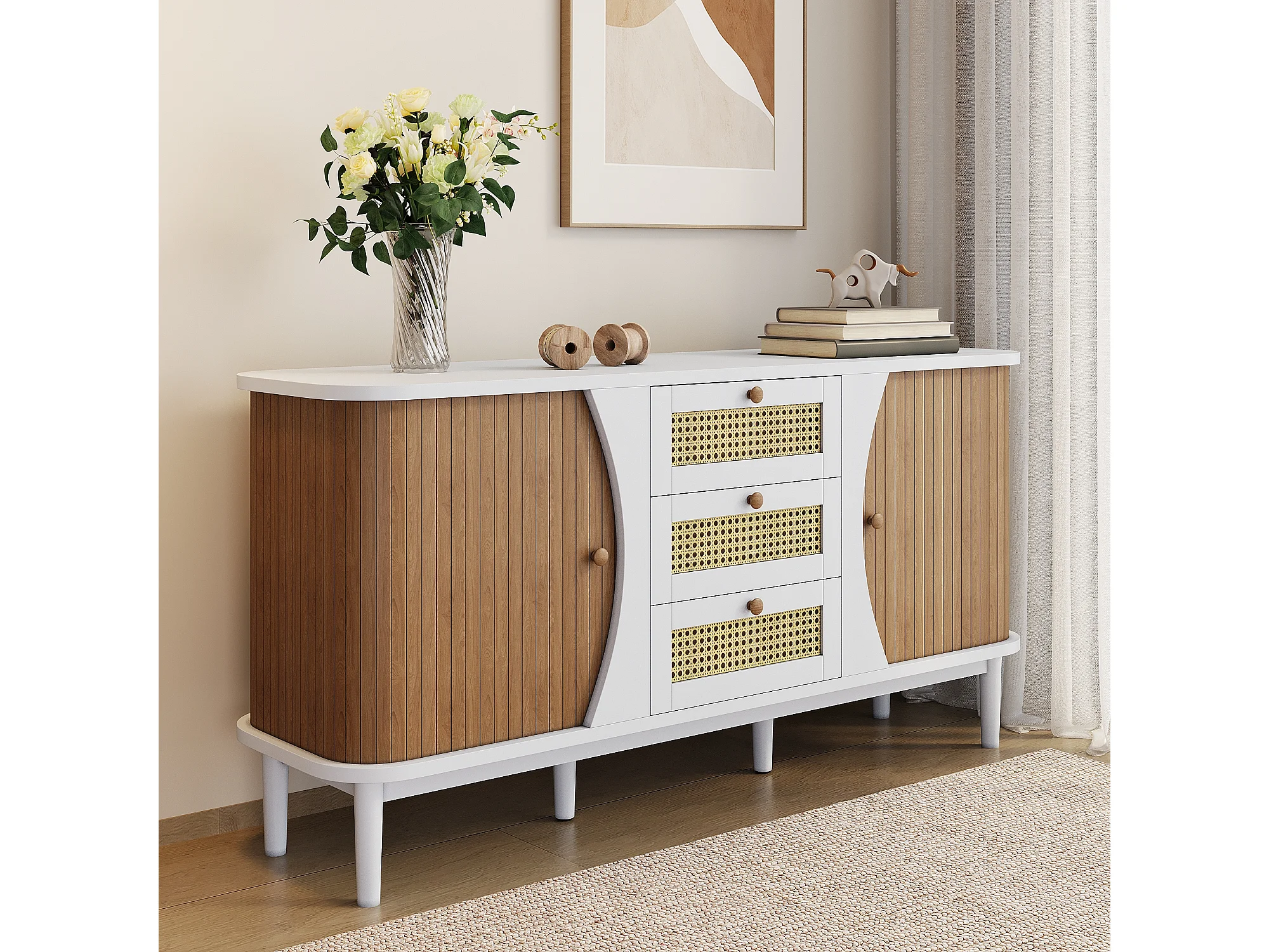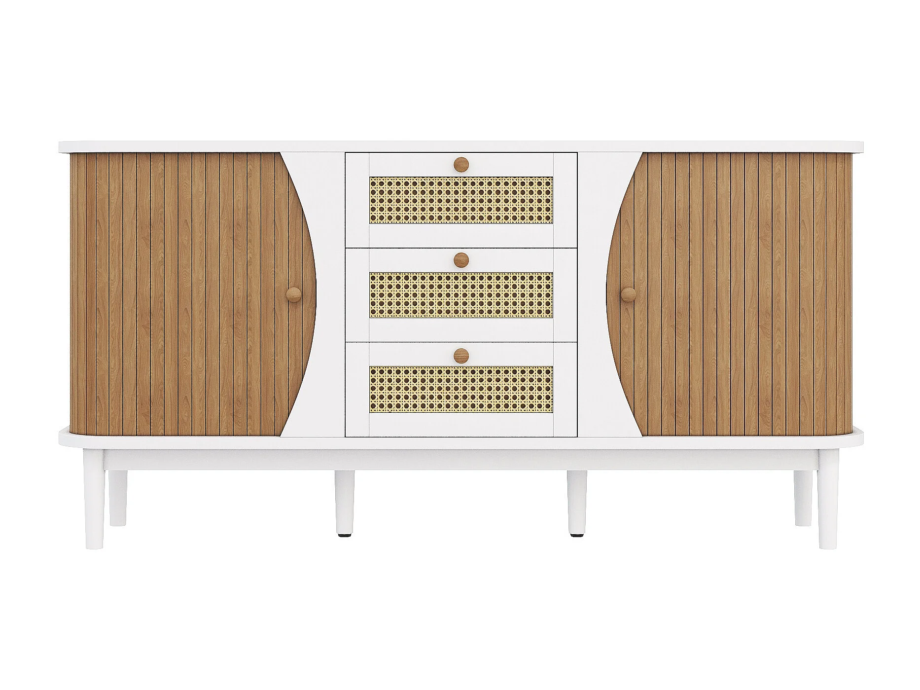 Buffet blanc et en rotin 2 portes coulissantes 3 tiroirs CRAL