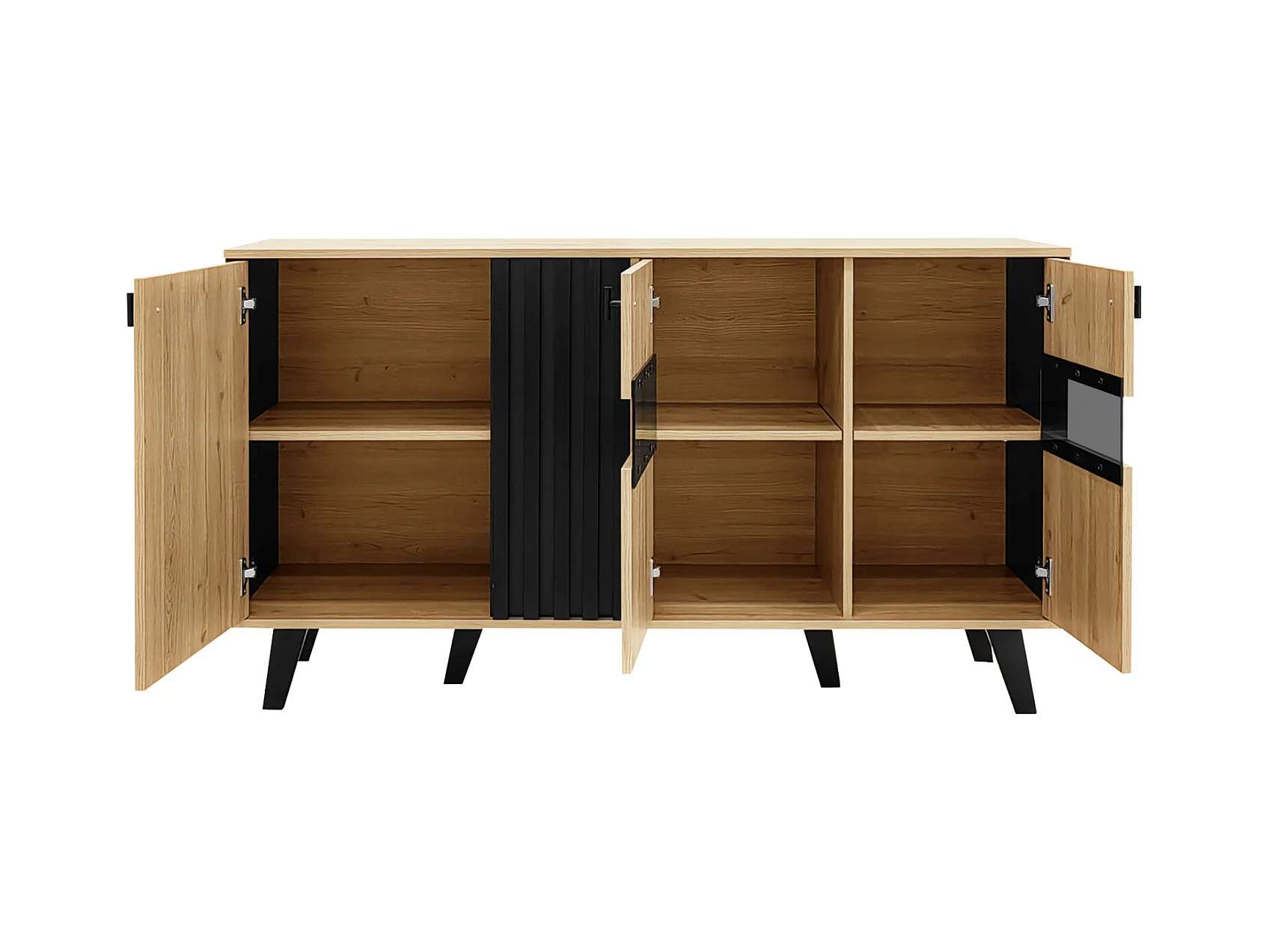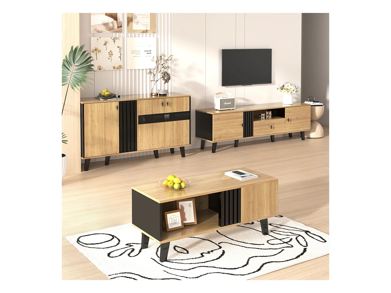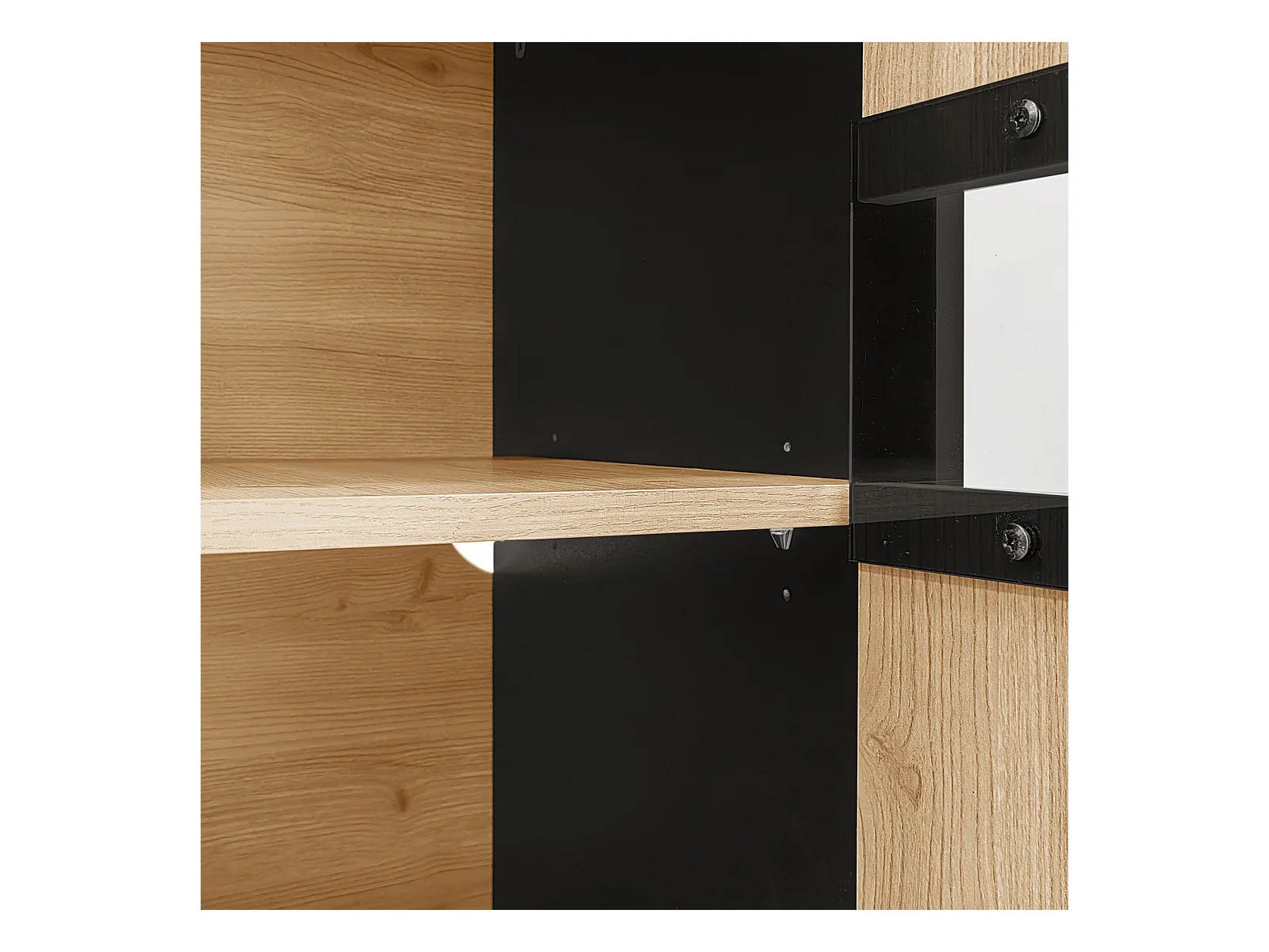 Buffet bois et noir 140x78,5x41 cm, LED et portes en verre, rangement polyvalent, idéal salon, salle à manger et chambre