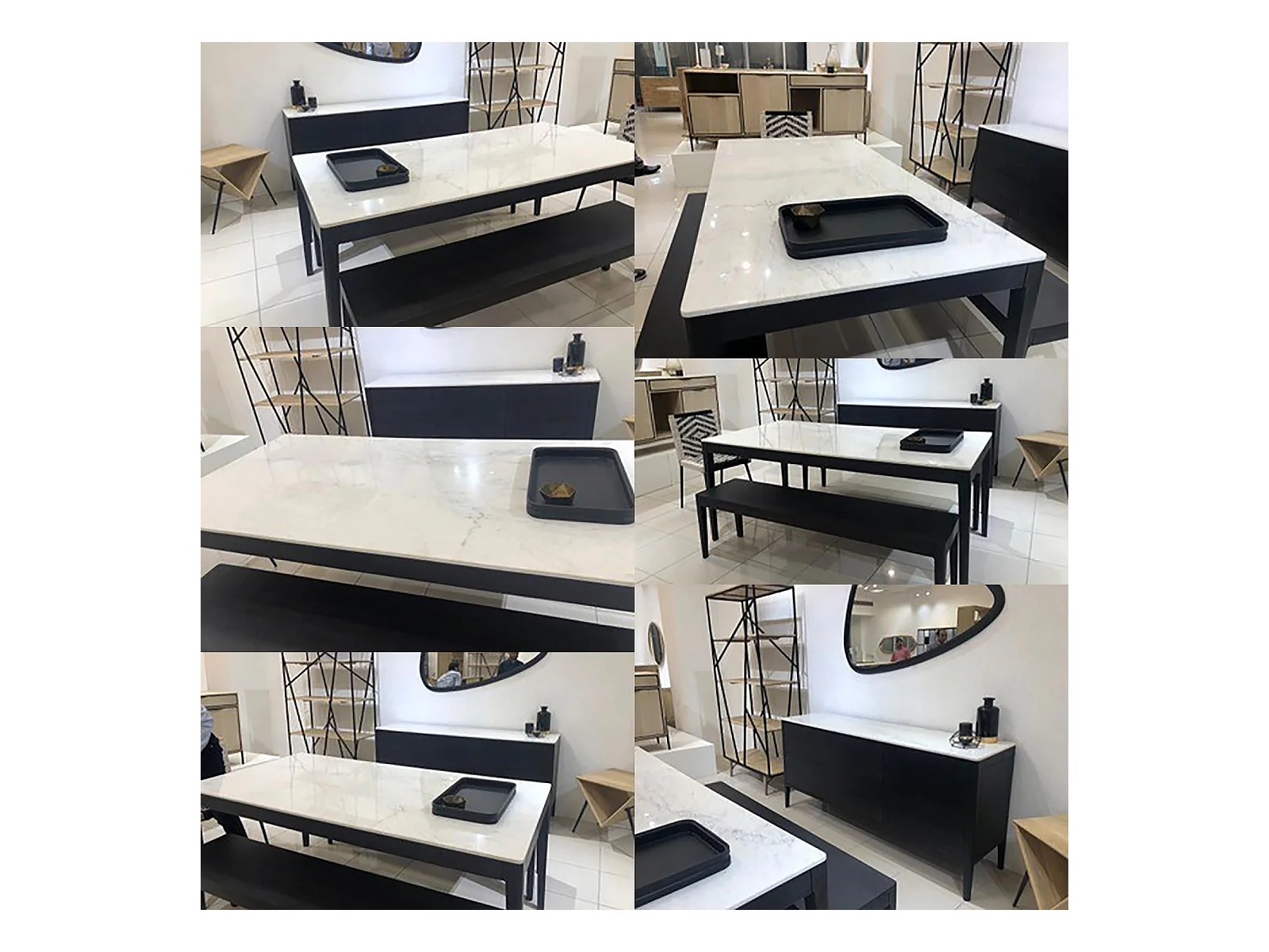 Buffet bois plateau marbre blanc 3T | Manguier Amsterdam