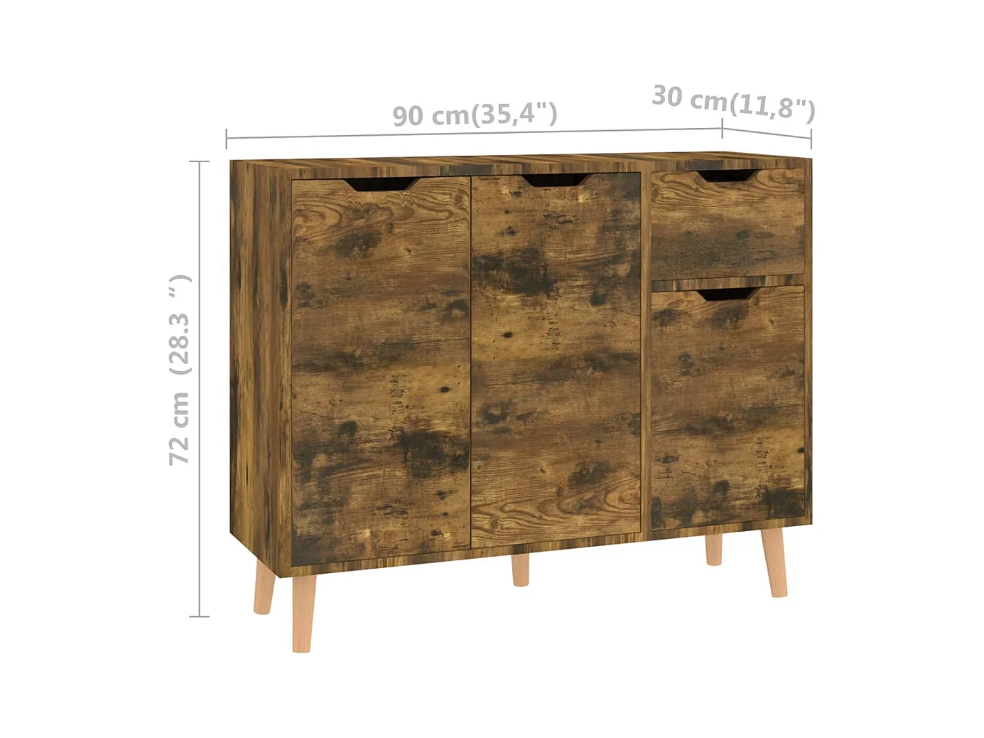 Buffet Chêne fumé 90,5x30x70 cm Bois d'ingénierie