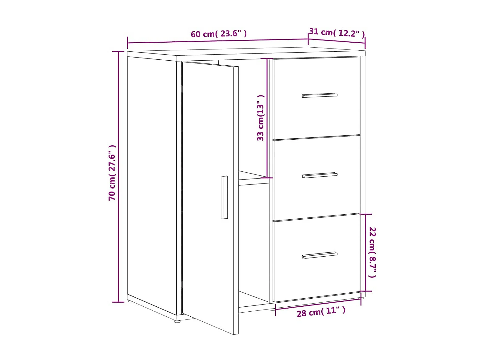 Buffet chêne marron 60x31x70 bois d'ingénierie