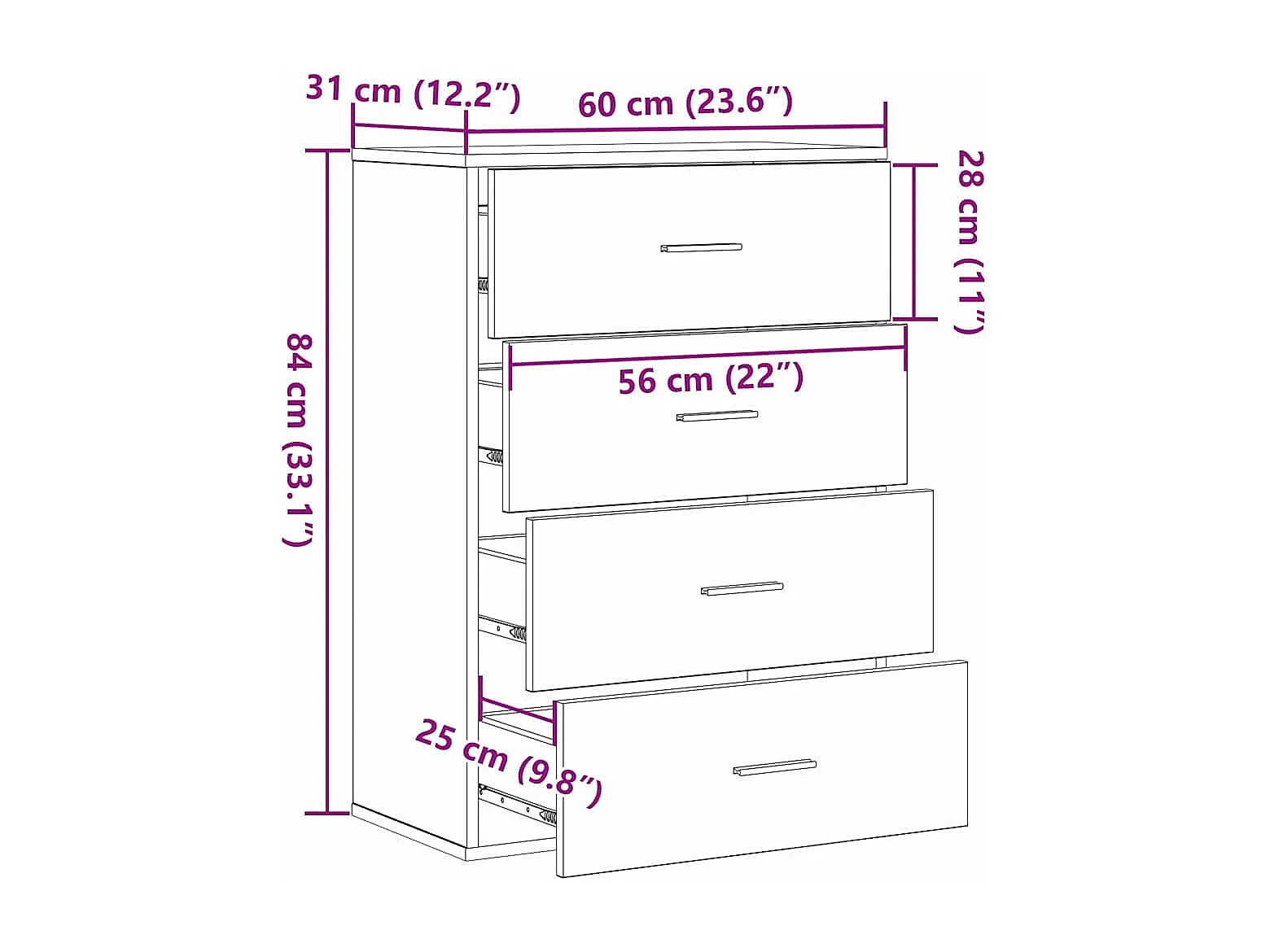 Buffet noir 60x31x84 cm bois d'ingénierie