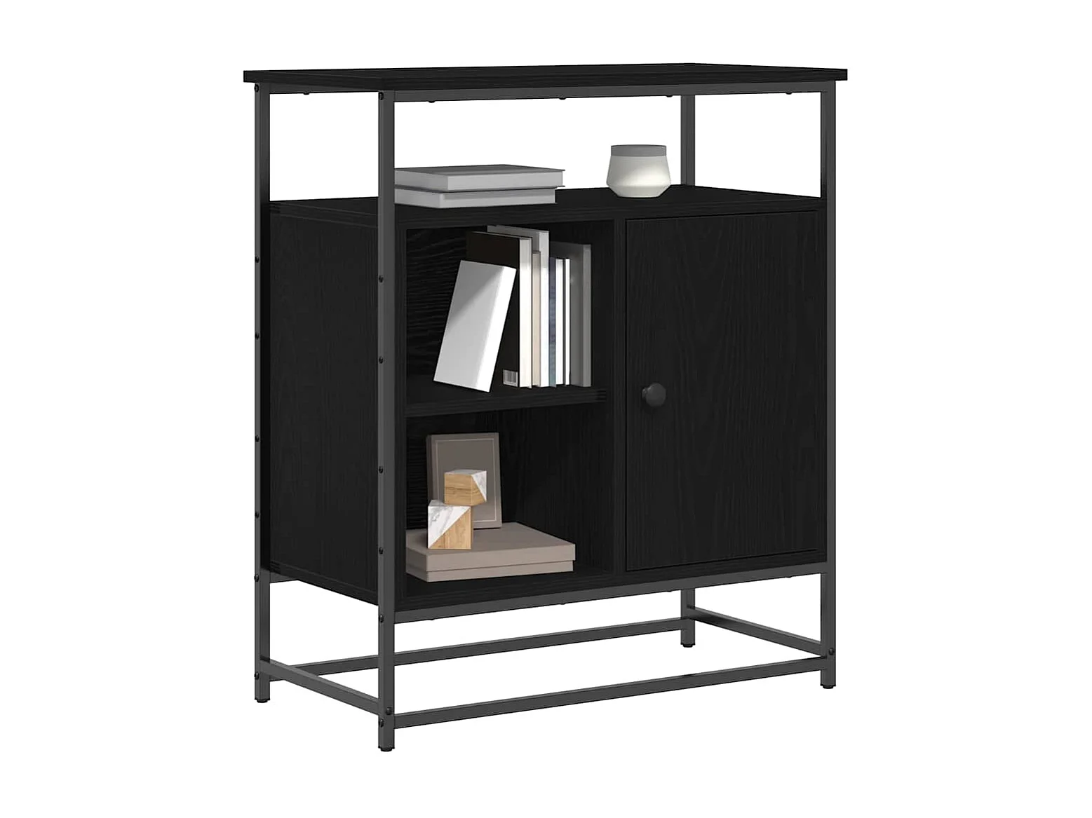 Buffet Noir Chêne 69x35x80 cm Bois d'ingénierie et Acier