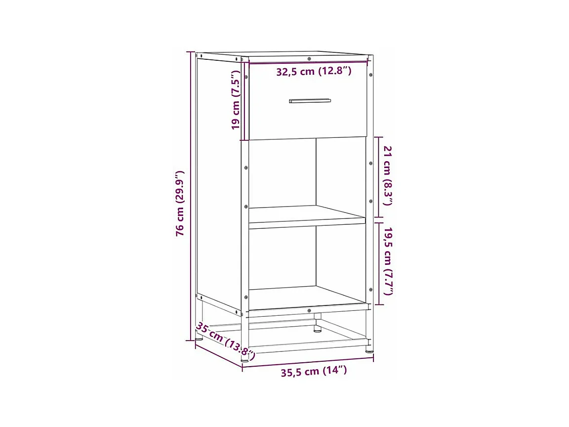 Buffet chêne sonoma 35,5x35x76 bois d'ingénierie et métal