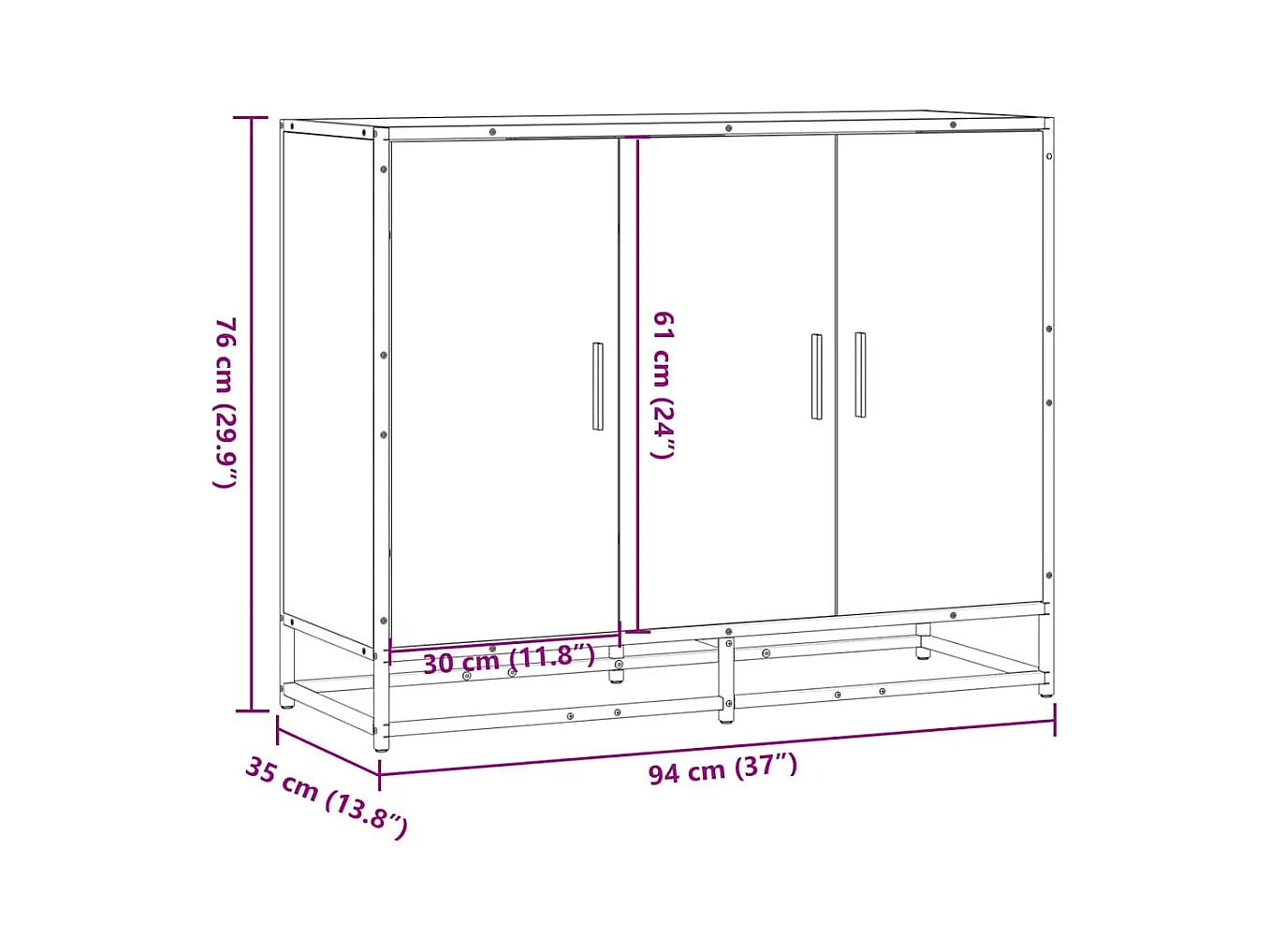 Buffet chêne sonoma 94x35x76 cm bois d'ingénierie