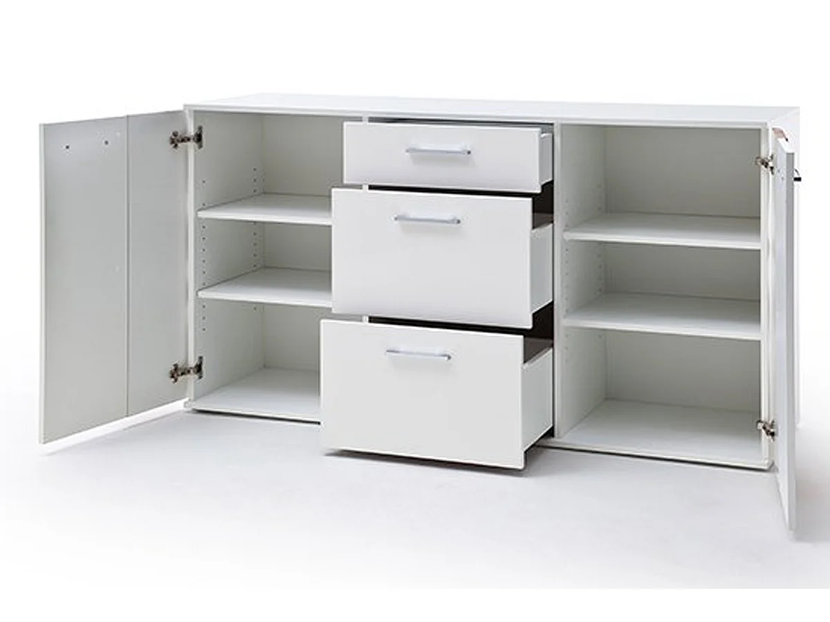 Buffet coloris blanc brillant et chêne - Longueur 154 x Hauteur 86 x Profondeur 44 cm