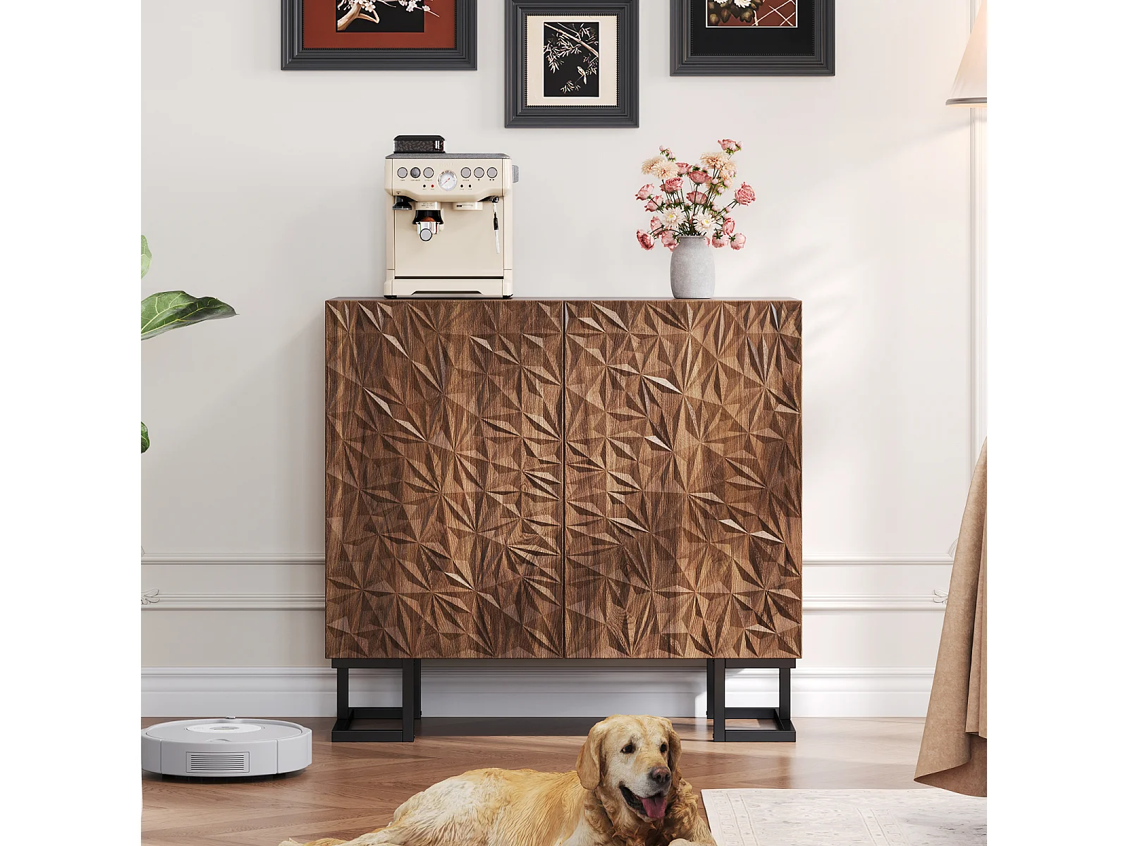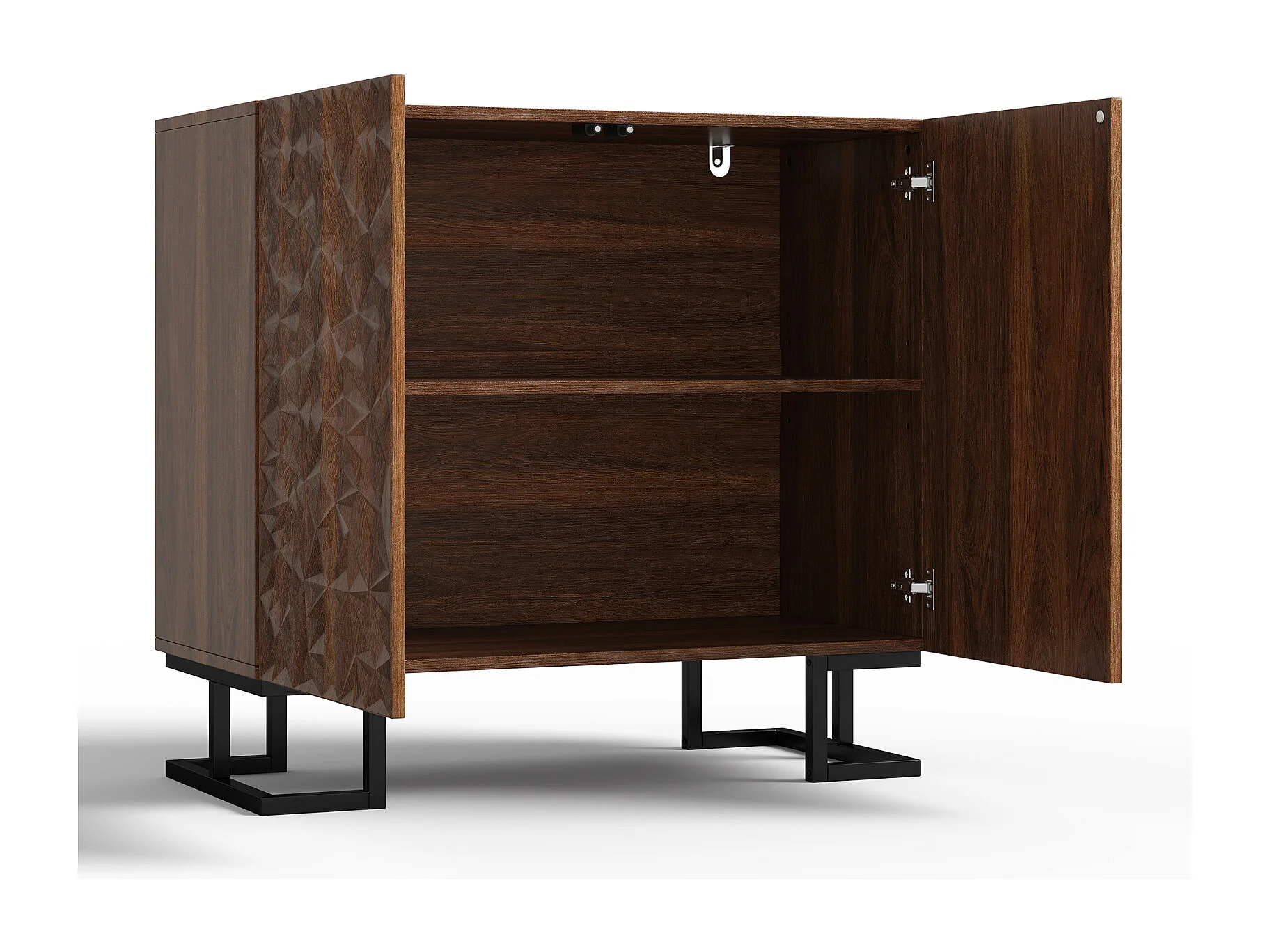 Buffet Commode 80 × 40 × 78 cm – Aspect noyer foncé avec renflement des feuilles – Portes push